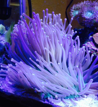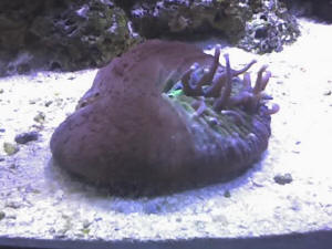 Heliofungia actiniformis - Signed Death Warrant 6/1/06 Ladies and gentlemen of WWM the service you perform is spectacular. <Wowzah! High praise indeed!> I have what appears to be a huge problem with a Purple Plate Coral. The specimen that I received has either been epoxied or puttied to a piece of live rock. <!> The rock is situated in such a way that the tissue of the coral is not rubbing against it. Because of the delicate nature of the plate coral I am reluctant to try to remove it from the rock, but everything I have read, especially here, tells me that it is a goner! <Likely so. Not a sturdy aquarium species.> I can place the specimen in such a way that tissue is not touching any rock other than the piece it is mounted to. <This is best> Do you think I should try to dislodge it, or just try to make it as comfortable as possible until the end? <This latter> It seems to be eating. I feed it a blended mixture (to try to minimize the particle size) of DT's plankton and oyster eggs, Sweetwater zooplankton, and either mysis shrimp, SF's Reef Plankton every or some other meaty foods every other day. The coral puts out it's mucus web and traps the food and takes it in. What do you think I should do? Thanks Roy <Perhaps this specimen will dislodge itself... or reproduce through fission or via acanthocauli... For browsers, our coverage: http://wetwebmedia.com/fungiids2.htm Bob Fenner> Plate coral Hi, I have a 80 gallon eclipse tank
