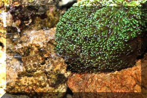 Weird frogspawn coral question... likely burned by a Galaxea neighbour 3/6/08 Good Evening, <Am here now for me> I have scoured this site and the internet for two weeks now with no answer to this puzzling question, although you guys have answered my 10,000 other questions without me even having to ask. Its all here for the taking. <Ah, yes> All comments on my methods/system are welcome. Anyway, back to the problem at hand. I have a frogspawn coral which I purchased three weeks ago and it is losing tentacles. About one tentacle is lost from each of its five polyps each day. <Mmmm, bad> The tentacles constrict at the base and eventually pinch off completely and float away. Otherwise, the polyps look fairly good. They extend each day, close at night, and eat mysis shrimp every other day. Also, the polyps are not receding where they attach to the skeleton. I suspect that this may be a response to the different lighting I have them under, as the colors are becoming richer as the days pass. <... could be> The store used 14000K 175 watt or 150, I forgot) metal halides, with about 7 watts per gallon. I have two 100 watt 6700K screw-in compact fluorescents, which give me 12 watts per gallon. I have used these bulbs on the tank since it was created 14 months ago; I have replaced them once already. I suppose some other background info will help also. The tank is 16 gallons, tiny, but I have failed twice with larger ones. I have about 40 pounds of live rock <! not much room left for water> in there with 3.5 inches of crushed coral substrate. I am using a sulphur based denitrification media in the lower layers of the substrate. <Mmm, this could be...> My protein skimmer is a SeaClone 100, which I have had for years and I like it due to its simplicity. I use no other filters. Parameters are as follows: SG 1.023 Temp 80F pH 8.3 Ammonia 0 Nitrites 0 Nitrates 0 never a problem because of the reduction of NO3 <Need to have some...> KH 10 Ca 450 ppm <A bit high...> I do about a 25 percent water change every week with a peristaltic pump to add water at the same time I remove it. I realize this is not as good as removing water then adding, but coral placement does not allow for it. I actually add a 5 gallon bucket of new water made from Oceanic salt mix, but some is removed due to the simultaneous siphoning out of tank water (the 25% I roughly calculated). I do not supplement any trace elements, as I perform such frequent water changes. <Good technique for small volumes> I also do nothing special to keep the parameters as they are. I do top off with RO water which has been remineralized with 10 micron powered aragonite and a dose of "purple-up" from CaribSea. <I would discontinue this immediately> Water flow is medium too low for the frogspawn and is multidirectional. It is placed lower in the tank, about 10 inches from the lights. Other livestock: 1 galaxy coral, rapidly growing, opposite side from the frogspawn <D'oh! Oculinids are very "stingy"... THIS is most likely the cause of trouble here> 1 Kenya tree, also growing, <Secondarily allelopathogenic...> 1 orange Fungia, 2 inches across, doing great on the sand bed. various mushrooms, Zoanthids, a little anthelia 1 green banded goby 1 Firefish 1 yellowtail damsel 1 brittle star snails and crabs All of these are long term inhabitants having been in the tank longer than 9 months (except the frogspawn). None of the corals have direct contact with each other via sweeper tentacles. Any suggestions, comments, and criticism is welcomed, as I want to solve the disappearing tentacle problem. Best Regards, Ken <Oh, I see by your titling below you have some life-science backgd.. There are a few possibilities, sources of potential loss of vitality that you hint at... But definitely read here: http://wetwebmedia.com/cnidcompppt.htm and the linked files above. Bob Fenner> Galaxea VS. Tridacnid 1/8/06 Hey! <'¦is for horses. Just kidding, couldn't resist. Hello.> I recently received a Galaxea (Oculinid) as a package deal on a piece of live rock with a clam (T. Maxima, gorgeous). <Oh yes.> They are both attached to the same large piece of rock. They are both currently doing fine. But, I was surprised the first time the Galaxea busted out with its sweepers. Those are long sweeps! <Oh yeah, have seen them personally at 10 to 12 inches. And very potent I might add.> Anyway, they are not touching the clam at this point, but if the coral continues to do well I am concerned that it might touch the clam in the future. Will the clam be affected? <Generally the sweepers are extended at night when the clam is closed so it should not be too much of a problem. However yes if the sweepers do come in contact with the clam (the mantle most likely) this could cause some mantle recession, which yes is very bad for a clam which needs the mantle for photosynthesis. Keep an eye out.> Do these kids need to be sent to different areas of the classroom? <Maybe, just keep a close watch as I mentioned.> Thanks for your help and for fighting the good fight! <Thank you for the encouragement.> Andy <Adam J.> Coral Aggression: Galaxea 1/7/04 Brant here again,