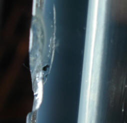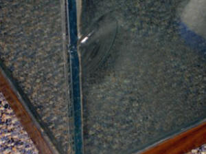 Chip outside new 72G glass tank 10/15/07 Hello, I just finished setting up my new 72G glass tank (bow face) and, after the first night, I noticed a small chip on the outside right at the intersection of the bow with the right side of the tank. Could it just be the result of "settling"? There is no leak and it appears that it's a surface chip. Question: should I ignore it, or should I replace? Note: the tank is pretty level - might be a bit off on the opposite side of where the chip is (meaning to level it perfectly, would require a small raising of the opposite end of the tank from the chip)- which leads me to think that the chip is not the result of the leveling. Thanks in advance, Tejas <Greetings. Glass chips not so much because of "settling" as from careless transportation. The fact that the tank isn't precisely level almost certainly doesn't have any bearing on the chip you can see. An aquarium should be as level as you can possibly make it though. But slight deviations don't matter too much. Glass is strong but brittle, so while it resists the static force of water very well, if it bumps into something hard, it cracks or chips. Conchoidal fractures (chips that look like scallop shells) are very typical of glass being struck against something like stone or metal. As for whether this is a problem: if you're looking for a guarantee that everything will be fine, I can't provide one. Glass aquaria are only predictable when they are in perfect condition. As soon as they are damaged, the explosive forces of the static weight of water can concentrate on that single "weak spot", and the chances of failure increase. You might be lucky, and the chip will cause no problems. But you might not be lucky, and a year from now the tank will Cracked freshwater tank -- 10/9/07 I have a 45 gal. long with a crack on the bottom. it is about 14 in. long and goes from one wall to the other going caddy-corner. I got it from a friend who had before me and he sealed it with 2 plates of 5/8" in. thick glass with silicone between the plates and the tank. before setup I took all the trim (except the plates. couldn't get them off) and resealed it and the crack with silicone. it sprung a leak at the bottom of the tank on the face at the joint. just a pinhole. sealed it once more and let it set for 48 hours. I got the leak down to a slow drip, but would like it to stop. I don't have money to buy a new tank but I have 3 tubes of all purpose silicone that is waterproof with mold deterrent (sorry for the spelling). what should I do and how can I get the plates off to do a full fix instead of fixing around it. thank you for your time. Andrew <Andrew, I sympathise! I was in the same situation a few months ago. Personally, I'm not one for repairing tanks because of the potential damage that can be caused if you make a mistake. Check to see if your tank is covered in your home insurance as well, in which case replacing the tank won't cost you anything at all. Anyway, there's a whole slew of articles on repairing tanks in the 'Aquarium Repairs' section of this page: http://www.wetwebmedia.com/marine/maintenance/index.htm . Cheers, Neale> Question, chipped glass tank 7/17/07 Hello WWM, I was just given a 100 gal aquarium that has 2 chips in the corners. They are sea shell shaped chips that slightly touch the silicon, which I'm sure is not good. I have read several of the other questions you have answered from people who have similar situations. From reading those responses I am convinced that the tank can fail because of the chips. My question is: Would it prevent the tank from breaking on that corner if I reinforced it with something like a PVC elbow and 100% silicon on the inside and the outside? <No or at least very minimally...> I am planning on building this tank into the wall so the chipped edge would be unseen, it can be ugly as long as it works. You guys usually tell people who have had similar questions to "give it a try", which I am willing to do. <I am not so cavalier in general... I would at the least Silicone a length of glass (of at least two inches width, over the outside and chipped areas... the height of the panel> I guess I would like to know if you have ever done anything like this and had it work or is there a better way. Of course, if the tank blows up on me I won't get mad at you guys, I just appreciate the advice. If it would help I could send some photos. Thanks for your help. Craig <There are extreme possible dangers in such a "blowing up"... Consider the suggested repair/band-aid. Bob Fenner> New 260 litres with corner chip and crack 7/12/07 Greetings from Canada. Great site! I've been reading your site since I got my 20g :) Recently I bought a new Hagen Fluval Osaka 260 tank with stand at closing LFS. During transport I noticed left corner at the back of the tank has small chip (frameless tank with aluminum brace covering front and sides panels). Good thing the small glass grains didn't cut my palm. Looks like that corner got struck before and I didn't see that in that under lighting LFS. Once I setup it up in my basement I noticed there is a small crack 2" length at the back panel close to that corner but doesn't extend to joint. No leak so far for 3 days now and the crack is not growing. It appears to be growing from inside glass to outside but haven't reach outside. I will double check if the crack is inside the tank (not only inside the glass). | | | | left | / |__________ bottom (view from front) Since it's final sale I contacted Hagen for warranty and still waiting for a response. Meanwhile what should I do? <Lower the water level half or more...> I plan to move in few months so should I plan to patch that crack and test before I move? <I would, yes> If I go with the patch, should I patch inside or outside or both (I prefer outside since it's easier)? <The outside... with a strip/panel of glass... as/at I see below where you've been reading> I read all Aquarium Repair FAQs and I would rather