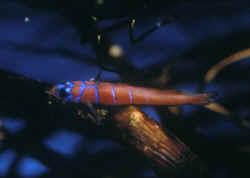 Identity of "dwarf neon gobies" Hello Fish people I was going through the goby FAQs and came upon one which mentioned an unknown goby of Indian origin with blue spots going by the name of "dwarf neon goby". I too have seen fish of that name and origin, and some months ago sent several formalin preserved specimens to Helen Larson, an expert geobiologist at the museum in Darwin, Australia. The following is what she told me: "They are Amoya, as I suspected - a convenient catch-all genus for things that look like Acentrogobius but aren't. There's at least 27 nominal species and nobody has ever reviewed the genus. These look like griseus/gracilis type things but I can't put a name to them for sure. They're not A. moloanus or A. gracilis. I won't be able to identify them without first sorting out what all the species in the genus really are. I've seen most of the type specimens but a number were destroyed in WWII and so we have to guess from the original description what Herre had. First we need to properly define Acentrogobius, Amoya, Arenigobius, Yoga, Yongeichthys and Aulopareia, then we'll be able to solve this problem!" So at this time no one can say exactly what they are (and this kind of problem is by no means unusual in Gobiidae taxonomy!) However, they seem to be good brackish aquarium fish - easy to feed, although somewhat vulnerable to bacterial infection after shipping. Mine have not yet spawned. Cheers, Naomi Eventual Editor - International Goby Society Staff - Gobioid Research Institute <Thank you for this information. Will be posting. Bob Fenner> Jumping Gobies! Good Afternoon (or whatever time it is when you come across this email). <Afternoon here- Scott F. with you> This pertains to recently purchased Gobies. I have tried 3 times to keep a Maiden Goby (Valenciennea puellaris) or sometimes called Diamond Goby. Each time it leaves the comfortable surroundings of my tank for a much harsher environment - the carpeting. I have lost 3 of the same type Gobies this way. The last one, which jumped last night, lasted less than 12 hours. A little tank information: I have a reef set-up 45 gallon tall. I currently have a little over 13 tank turnovers per hour but my oxygen level is still low so I plan on adding another power head to bring my turnover rate to near 20/hour. <The low oxygen level is of concern...do add more circulation and surface agitation for gas exchange> I have removed the top on my aquarium in order to bring the O2 level up with little success. My skimmer is properly sized and working great. After the first Goby committed suicide, I purchased and installed a section of egg crate (louver) over the approx. 4" open section behind my light (light sits directly on top of tank). The second Goby found a way out of this so I decreased some of the cutouts (for HO Skimmer and the like) where there were no openings larger than the 1/2" X 1/2" squares. My 3rd Goby worked his way out of this last night. I even tried a night light that was suggested. My question is this: I like the Goby and it's sand sifting properties. Is there anything I can do other than covering tank with screen like material and/or buying a Goby larger than the 1/2" openings? <Unfortunately, I think that using a screen like material is your best bet (Fiberglass, not aluminum), short of covering the whole top with acrylic or plastic. If the fish wants to get out and become "reef jerky", as they say, about all you can do is make the task more difficult for it> Are there any other Gobies or Goby like fish that sift like the Goby but that don't like to jump? <Unfortunately, a lot of these types of fishes (sand sifting gobies and Tilefishes) tend to have the jumping habit. Personally, I have always used brittle stars to do the job. In actuality, there are a lot of people who argue (and I think quite correctly, in many cases) that sand-stirring creatures are not needed in most well-maintained sand beds, as they tend to decimate the sandbed fauna that contribute to the function of the sandbed.> I hate to have to switch to the sand sifting stars. They aren't nearly as fun to watch. Any suggestions are appreciated. Thanks, J.T. Craddock <Well, J.T.- I think your best bet is to use the screen material, or to simply discontinue the use of these types of fish in your tank. Wish there was a better solution I could offer, but I think that your options are kind of limited in a situation like this. Good luck! Scott F.> |