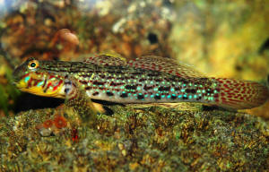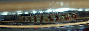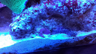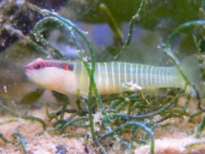 Might have a Gobi on my hands? Desert dilemma? 02/11/2007 Hello Again, <Howdy> I have scoured your website, and now have myself even more confused. After looking at dozens of photos I have decided that I definitely have a goby, and the nearest match I can find is " Ctenogobius shufeldti " . I found the picture at http://gobiidae.com/FL_goby_project/FL_list.htm I have tried to get a picture of my own, but the fish just blends in too well with my gravel for a clear view. This is a very fast little fish, and he appears to be very aware of his surroundings. He "walks" around on his pectoral fins and sometimes "sits" on them to move his head around to watch the other inhabitants of the tank: (1 ghost shrimp, 1 small crayfish, 6 guppies unknown number of tiny snails). I have also noted that he seems to be able to move his eyes individually. <All generally characteristics of this family... and a few others of size> He mainly keeps very still when the lights are on, so I do not know what (if anything) he is eating. I have seen him nosing around an artificial plant, but when I get close to watch he darts back down to the gravel. I am feeding my guppies regular flake food, that has shrimp listed as the main ingredient, but he has never shown any interest in it. The crayfish has happily destroyed my java moss, duck weed and water sprite as well as any snail she can pluck from its shell, and I supplement her with frozen peas, and raw frozen cod. The little ghost shrimp seems to eat a little bit of everything. But I have never seen the goby eating. Any suggestions? <Posted on WWM> He is a really neat little fish. I saved him from a feeder tank, but I am not sure I am doing him any favors by starving him to death. Also, do you have any idea why it is illegal to purchase gobies from a pet store in the state of Maine? <Check with the governing body re... perhaps a fear they will be released to environments where they might out-compete indigenous species> None of the local pet stores have any idea. Additionally we can not buy fresh water invertebrates locally. Get this... I can buy live crayfish as bait, but I can't buy them in a pet store, and I can legally purchase ghost shrimp through the mail. Thanks so much for a wonderful resource, Doug Alley <"In a mature society "civil servant" translates as "civil master" (Robert Anson Heinlein)... Stay tuned as the U.S. tumbles in the predicable sea of too much government... NO lifetime civil servants. BobF> I have two bar goby, reproducing? What species? 9/6/06 < http://fishbase.sinica.edu.tw/ComNames/CommonNameSearchList.php Eviota?> that have been digging holes in the bottom of my 75 gallon aquarium for several months. They like to hide under a large hollow rock. Today, inside a hollow castle, appeared a rather yellow netting, that one goby seems to be protecting and constantly rubbing against. Is this possibly an egg sack? <Yes!> I have found no information on the mating of bar goby. Please help! <Take a read per the link above. Once you have the species name, look in turn with this... Bob Fenner> Goby and wrasse questions... Champagne livestock tastes, Bud tank 8/23/06 Hi. <Hey there!> I have a 45 gallon tank with the following critters - a clownfish (currently residing in an anemone), Firefish goby, pajama cardinal, diamond sand goby, scarlet cleaner shrimp, some Christmas tree rocks, some coral frags, some snails and a scarlet legged cleaner crab. I saw a beautiful fish the other day, the store rep said it was an African Aurora Goby which I think is called Amblyeleotris aurora?) <Maybe> and he priced it at $80. <Man! I got out of the fish collection biz much too soon!> I looked on an internet site and saw something very similar but it was called a Pinkbar goby (for $30), and it was listed as originating from either Indo Pacific or Maldives, aka Cryptocentrus aurora. They look so similar to me, is there any difference? <Mmm, nope... try putting both names into fishbase.org...: http://fishbase.sinica.edu.tw/Summary/speciesSummary.php?ID=12694&genusname=Amblyeleotris&speciesname=aurora is the same species... is an Amblyeleotris> And is there a difference between the Indo Pacific one and the Maldives one? <Mmm, maybe slight geographic variation in color, markings... and likely cost... the further away... the higher> Also, are they hard to keep, and will there be any compatibility problems with my current fish? <Your 45 may be too small to provide sufficient habitat for this shy species to "feel comfortable"... Do you intend to supply an appropriate Alpheid symbiont? I also saw a lovely leopard wrasse; again, would there be any compatibility or feeding problems with this fish? Thanks for your time, Ak <I would not encourage someone to try a genus Macropharyngodon Labrid in such a setting. Bob Fenner>