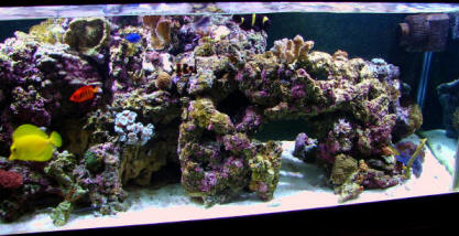 Stocking question, small reef, and FYI, re: der. of Yasha haze... 4/24/07 Hello Crew, <Eric> Long time reader, first time writer here. (Actually, I wrote about a week ago and didn't receive a response, so I'm trying again.) <Good> I have a 7 gallon (5 gallons of water) tank (30cm x 30cm x 30cm) with a little under 3kg of live rock, a Stonogobiops yasha and an Alpheus randalli. Lighting is 40W of compact fluorescent. All filtration is biological via the live rock, and I have a power head and a hang-on filter with the media removed which combine to circulate the water 25 times per hour. Ammonia and nitrite are at zero and nitrate is at 5ppm. SG is 1.024 and pH is steady at 8.3. Alkalinity is at 4 mEq/l. (All data is from Red Sea tests.) Can you recommend a second fish that will be comfortable in this size tank? <Some of the very small, easygoing Pomacentrids, Apogonids, Blennioids, Gobioids... many possibilities> The aquarium stores I've visited here in Japan have made all sorts of suggestions, but I'm pretty doubtful about all of them. I'd really like to find a compatible fish to add, preferably one that is a free swimmer, because the tank seems lonely with the goby and shrimp hiding almost all of the time. Also, FYI, I see lots of different spellings, variations on the common name for Stonogobiops yasha, and I thought you might be interested to know that the fish's common name in Japanese is "yasha haze" "Haze" is pronounced "hah-zeh" and means goby, so the term "yasha haze goby actually redundant. "Yasha" is a female demonic warrior deity, and I assume that the goby gets this name from its bright red stripes and spiky dorsal fin. <Thank you for this> Thanks in advance for your advice. Yours, Eric Anderson Zushi, Kanagawa Prefecture, Japan <Bob Fenner, Holualoa, Big Island, Hawaii> Awaous flavus not a blenny! 3/22/07 Hi Bob, It's a nice photo, but Awaous flavus is a goby, not a blenny. http://www.wetwebmedia.com/FWSubWebIndex/blenniods.htm I bet you're going to kick yourself for that mistake, huh? Now, I'll confess to getting Mullidae and Mugilidae confused all the time. Cheers, Neale <Man! Well... I make both mistakes... "and many more....". B>