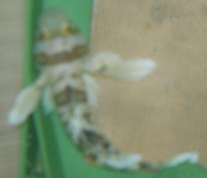 on them; body is yellowish-green with brown bands; sprinkling of neon