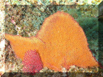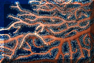 in size. Reddish orange fans with light colored and polyps. Roatan 2016 |