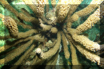 branches. Whitish, yellowish with white polyps. Aquarium photos. |