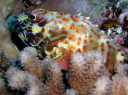 Cyprinocirrhites polyactis and a Cirrhitops fasciatus. Do you see any