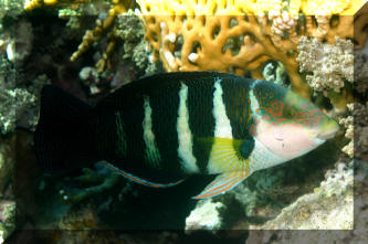 Barred Thicklip Wrasse (2). Indo-Pacific, including the Red Sea,