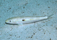 Sidespot Goatfish. Dark spot on body at rear of first dorsal fin;