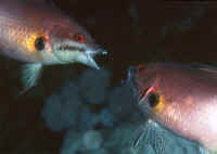 Hogfish sex??... Good Morning Wise Wet Ones- <Hey Andy> I recently got a 4" Cuban Hogfish for my 180 FOWLR, which also includes an adult Imperator angel, clown, royal Gramma, hippo tang and 3 small damsels. After a few days of harassment from the angel, everyone has now settled down. In CMA. Bob mentions to keep only one supermale per tank. I checked your site and FishBase.org for help, but haven't been able find out how to tell the difference. I would like to get another and haven't a clue how to tell the sexes apart. Any ideas? Do you think it would be too crowded if I added one more? Thanks! Andy <Hard to discern the sexes in hogfish wrasse species... Males are decidedly larger, and do develop something in the way of a nuchal hump on their heads. Best to house just one of a given genus in all but the most humungous of systems (several hundred to thousands of gallons), unless all are small (a few inches)... or (risky) one very much smaller than another. Bob Fenner> Student Working on Thesis on Local Fishery Hola, soy estudiante de licenciatura y actualmente realizo mi tesis de licenciatura, y estoy trabajando con la especie Lachnolaimus maximus, entre a su pagina de internet y por esta razon acudo a usted, ya que en el lugar donde estoy hay poca informacion sobre esta especie, mi tesis se titula "Analisis de la pesqueria de Boquinete Lachnolaimus maximus, en la isla de Holbox, Quintana Roo, M?ico" si ustede me podria proporcionar informaci? sobre aspectos ecologicos de esta especie y tal vez datos meristicos y parametros de crecimiento para poder realizar una comparacion con los que yo obtendre en este trabajo, sin mas por el momento quedo de ustede agradecido. Oswaldo S?chez Ak?br>Colegio de la Frontera Sur (ECOSUR), Unidad Chetumal Translated by Digna Cassens Hello, I am a student of "licensing", and I am writing my thesis on the species Lachnolaimus maximus. I found your page online, but with very little information. The thesis title is "Analysis of the Fishery of 'Boquinete - Lachnolaimus maximus on the island of Holbox, Quintana Roo, Mexico". If you could provide me with information regarding the ecological aspects of the species and perhaps data "meristicos" and parameters of growth so that I can compare with the data I will obtain in this work. I would be very grateful to you. Oswaldo Sanchez Ake Southern Frontier College <Oswaldo, no tengo/tenemos mas en el especio, lo siento. Nos vemos. Roberto Fenner> <Oswaldo, I/we don't have much on this species, I'm sorry. We'll see you. Robert Fenner> Bodianus bimaculatus (12/28/2003) Dear crew; <Steve Allen tonight> I have purchased a Bodianus bimaculatus <aka Twinspot Hogfish> and it seems to be a great fish. It has been in quarantine for 25 days with no ill effects. I have not found much aquarium info on this species. it is intended to be housed in a 65gal FOWLR with a coral beauty and a Dascyllus damsel. Any opinions or advice would be appreciated. Seems to be a very nice omnivore. <I checked Scott W. Michael's "Marine Fishes" book and found that this fish is generally peaceful and tops out at about 4" It is an omnivore that will do well with a variety of meaty foods. It is generally considered reef-safe. Like most Hogfish, it does get boisterous and may bully timid fish like Firefish & Dartfish. Consider buying the book--very useful.> Thanks a bunch, Stanley C. Krol <You're welcome.> Species ID, info (Bodianus spp.) Recently purchased a fish that is virtually indiscernible from the fish pictured on your site that you call a "Blackspot Hogfish" (Bodianus opercularis). The wholesaler's invoice, however, identified it as B. masudai. This is also the name given on the Marine Center website, about the only e-tailer that ever offers it for sale. <I see: http://www.themarinecenter.com/bodianusopercularis.htm This is what I believe to be B. opercularis...> I looked on the fishbase.org site and my fish bears much greater resemblance to their photos of opercularis, so I am inclined to think the wholesalers (and the Marine Center) are wrong, <Me too. Fishbase: http://www.fishbase.org/Summary/SpeciesSummary.cfm?ID=23526&genusname=Bodianus&speciesname=masudai (for B. masudai) and http://www.fishbase.org/Summary/SpeciesSummary.cfm?ID=25754&genusname=Bodianus&speciesname=opercularis (for B. opercularis)> especially since the invoice that accompanied my fish stated that it came from Oceania-- not exactly specific, but B. masduai is only found in Japan according to fishbase.org, while B. opercularis would logically be found in Oceania. <This is correct. B. opercularis occurs from the Red Sea, in various places of tropical Indian Ocean over to Christmas Island... its range with B. masudai is distinct, does not overlap> This is an important question for two reasons-- first, B. masudai must be sub-tropical if it only comes from Japan, and therefore, I assume, will perish in my 80 degree tank. <Mmm, IS subtropical... according to Fishbase as well as logic (location)... would try to keep temperature below 80 F> On the other hand, masudai only attains a size of 12 cm, whereas you list opercularis at a more gargantuan 9 inches (Fishbase claims 18cm max-- any idea why your figure is higher?). <Thanks for this... can't discern from my paltry notes on WWM (but/and am soon to be "on to" the labrids (am on the labroids which are... now,... the damsels)... for NMA v.2...)... can't recall or reason where I would have come up with the nine inch maximum... About the biggest I've seen (Red Sea) are six inches, and those in captivity even smaller. I suspect the 18 cm., about seven inch maximum (or a fudge mark for "real" standard length) is closer to reality> In my case, "size matters" as well, since I've got it in a 90 gallon reef, where it is, by all behavioral measures, a perfect fish at this point. Any chance your 9 inch claim is (as they tend to be) an exaggeration? 18 cm or less is much more to my liking. <Ha! I suspect your fish will be fine, will "max. out" at