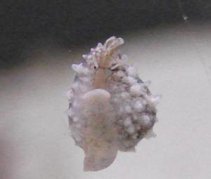 here!> Then I found a white fuzzy snail on my glass tonight.