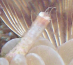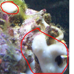 Unidentified Creature 3/20/06 Hi I recently got a rock nearly completely covered in button polyps. One of the polyps isn't actually a polyp, it seems to be some animal camouflaged as one. This animal is either hiding under a trap door that looks like a polyp or its back looks like a polyp. Every once and a while one side of the "polyp" lifts and yellowish antennas/arms are visible. Even stranger today I noticed a slime-like thread coming from this creature. Looking at it closer the animal appeared to using the thread to feed, releasing it then later, after various particles/detritus became stuck it pulling it back in, then releasing it clean again. Any idea what this could be, I have tried searching the Internet and your website and cant find anything about this. Thanks -Zach <Is most likely a species of tube-dwelling polychaete worm or a tubiculous snail. Not harmful. Bob Fenner>