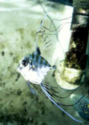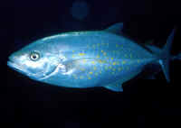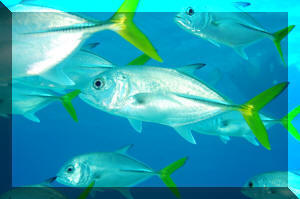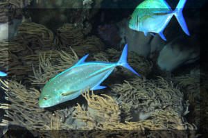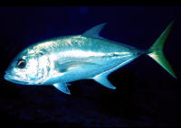 Selection: General to Specific Size is a strong criterion for keeping aquarium specimens physiologically AND psychologically fit/happy. Besides, for starting, smaller individuals are more adept at adjusting readily to the vagaries of aquarium life. An ideal range for purchase is somewhere between 2 to 4 inches in overall length. Environmental: Conditions Chemical/Physical: Filtration Jacks are not particularly fussy as regards absolute water quality. Due to their continuous daytime cruising and prodigious waste production, strong circulation and high-power filtration is a requirement. Display Big, Bigger, Biggest… even bigger. With lots of water movement… plenty of space to move around. That's what these fishes need. Behavior Due to their size, food requirements, these fishes are typically casual toward other fishes other than the ones they can consume. Most species school together in the wild and if they are presented to you as more than one to a tank at the dealers you are best advised to maintain them as such (or as a pair if they are) in a system of several hundred to thousands of gallons in volume. Introduction/Acclimation First a note regarding netting. I strongly suggest you utilize two nets to direct these fishes into a stationary underwater container (doubled bags), rather than lifting the animal into the air. They assuredly will thrash around either way, but the latter is almost assuredly will result in more injury. Once the fish is "home" it is best placed and left alone unfed in an unlighted system for a day. Jacks are one of my exceptions to the general rule of quarantine; most are clean and ready to go with just a preventative freshwater dip. Put another way, moving them again is not worth the damage that the small potential for disaster warrants from simple introduction to the main/display system. Predator/Prey Relations Jacks can be trusted with non-fishes in the way or sedentary invertebrates of all kinds. They will/do eat crustaceans, squids, worms… and small fishes in the wild. Reproduction, Sexual Differentiation/Growing Your Own: Some species of Jacks have been artificially spawned (through hormonal manipulation), raised to an extent of development in captivity for mariculture interests. There is no discernible differences amongst/between the sexes. Feeding/Foods/Nutrition: Types, Frequency, Amount, Wastes Readily take all kinds of foods… and quickly adapt to captive fare… more, and more frequently are the rules here in foods/feeding. Disease: Infectious, Parasitic, Nutritional, Genetic, Social Jacks are very resistant to infectious and parasitic disease. What are paramount with carangids are quickly receiving healthy specimens, a minimum of "handling" and their placement in proper circumstances Close: Do you have a huge system, with more than vigorous aeration, circulation, tremendous filtration and a big pocketbook for food and energy to keep Jacks? I would look for more suitable aquarium species if not. These are fishes for Public Aquariums and sportsfisherfolk. Bibliography/Further Reading: Baensch, Hans & Helmut Debelius, 1994.Marine Atlas, v. 1. Mergus, Germany. Burgess, Warren E., Herbert R. Axelrod & Raymond E. Hunziker III, 1990. T.F.H. Publications, Inc. NJ. Fenner, Bob. 2001. Do you know Jacks? The family Carangidae. FAMA 5/01. Nelson, Joseph S., 1994. Fishes of the World, 3rd Ed. John Wiley & Sons, NY. |