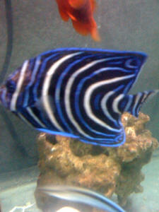 Koran Angel Hi, I recently had written to you about the Koran angelfish. I finally bought one that was in prime condition. (He's a changeling, he has a yellow strip on him now.) The problem is his right eye has clouded up a bit and his left one is normal. What's going on? The water is good and he's eating really well. (I feed him 6 small servings a day, each serving is finished in under 2 minutes). What could be wrong??? Any insights would be GREATLY appreciated. Thanks. David. >> If it's only the one eye, the cause of the cloudiness is likely some sort of mechanical injury... like a brush with a rough net when the fish was moved... And it will self-cure... That is, you need only do your best to optimize and stabilize the animal's environment. If the cloudiness were on both sides, there might well be a real issue of poor water quality or infection... Be patient, the opacity may take a few weeks to heal completely. Bob Fenner Koran Angel thanks, Now that you mention mechanical injury, I think he might have bumped really hard into a rock when I turned on the lights when I thought I heard a mantis shrimp in my tank. Thanks for the reassurance. David. >> Ah, I suspected as much... take it easy always on the sudden lighting issue... turn the "house lights" on and wait a good ten minutes before turning on any/some of the tank ones... a big deal, yes. Bob Fenner, glad to render reassurance.Koran Angel Now there is a bigger problem, His eye is swollen now too, and looks as though it may explode. You can't see it's pupil anymore. All you can see is he out side of the eye and looks damaged. David. >> And a tough call... if the eye is totally damaged to the point of loss... this may happen... if it is intermediate... it may warrant a swab of antiseptic (much the same as humans)... if it is only slightly damaged (not possible to assess at this point), it isn't worth the further trauma of netting, handling the animal... The long and short of the situation: I would wait a few days to see what transpires (not surprisingly Latin for "looking through" or across) Bob FennerKoran Angel Umm, have you seen a condition where the eye looks as though it's swelling out of the socket? It's taking the eye cover with it. So it may be grim right? Thanks for all our advice. David. >> Not necessarily... hang in there... the eyes of fishes like ourselves are highly vascularized... lots of blood vessels... and subject to similar edema/swelling with physical trauma.... give the animal time. Bob FennerKoran Angel This is David again, Recent developments in my fish are: Both eyes are now cloudy, I suspect that he is really skittish and might have bumped into another rock. His eyes haven't exploded yet. There is skin like material coming of his eyes. (I'm suspecting a type of fungus.) Any ideas? David. >> Hmm, well, I would at least consider moving the distressed animal to a quarantine/hospital tank... if you have one... and keep the lights low... If the problem continues to progress/worsen... I would further consider applying an antiseptic to the fish's eyes (with a "q-tip")... and if it looks even worse... and persistent, consider mixing in antibiotics into its foods... the eye discoloration is not fungal... maybe bacterial... Bob FennerKoran Angle I have a Koran Angle it is about 11/2 in size. I have had it for over 1 year it has started to lose its color on its face how should I treat it >> Really? A Koran (Pomacanthus semicirculatus) that you've had for more than a year... and it's only one and a half inch long?... The color loss is due to either poor water quality, or more likely in your case, to a lack of nutrition... Make sure the fish is getting its share of food, twice daily... and soak/treat the food with a commercial vitamin/iodine prep.... Bob FennerThree weeks ago we purchased a Koran angel from a chain pet store, and noticed that this gorgeous fish was in a 20 gallon tank with four other fish, so we wanted to save it from these horrible conditions. The Koran's juvenile colors were dull, and we assumed that maybe he was beginning to change to his adult colors. But after two days in our tank (65 gallon), his colors became vibrant and he was eating very well. For the past couple of days, the Koran has stopped eating, his colors have become dull once again, he has developed some corrosion around his fins, and his eyes are so glazed they look white. All the levels in the tank seem to be normal, we did just add a sea anemone and two clownfish, but all of them seemed to be coexisting fine. We do not want to lose the Koran, so if you could provide us with any solutions or ideas to what is ailing him it would be appreciated! We do have two invertebrates in the tank, but they can be moved to another tank if necessary (The Koran cannot be moved because of his size in proportion to the other tank). Please respond immediately, we don't want to lose him. >> Unusual... and maybe related to the presence of the anemone... but, if it were me, and especially if I had no other place to move the animal I would leave the Koran in the tank it is now and hope for the best... this species (Pomacanthus semicirculatus) often does seemingly miraculous turn-arounds... Subdue the lighting for the next few days, add a biological cleaner organism if you can (my fave, a Lysmata amboinensis Shrimp) and try to be patient. Bob Fenner, who's article on this favorite Indo-Pacific Angelfish can be found archived at the URL: www.wetwebmedia.comHello, first of all thanks for the help. I have another question. My Koran Angel doesn't seem to be getting better, maybe it is, maybe its not. Its in a treatment w/ copper since it has ich. It also has another ectoparasite like bumps. what could it be. thanks. >> Either a type of external parasitic/infectious agent, its effects/response by your Angel, or possibly just a reaction of the fish to something disagreeable in your water. You might consider scraping a bit of this material off and looking through a s