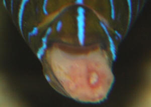 4/14/09 Young Koran Angel, hlth. 8/24/08 Hi! <Hello> Firstly, this is a truly fabulous site and so is the book by Mr. Fenner, that has become a bible for us. Brilliant! <Sarah, I wish we were having a Guinness> I have as suggested, read the web site and searched the Internet. for advice to help my young Koran. I am scared we are losing him and don't know how to what to do! Purchased 6 weeks ago, he was eventually introduced to the tank (100gls) 3 weeks ago. He was vibrant with colour, active to the point of rowdy, came readily for food and was at ease with his tank mates. Today, after 2 days of deterioration, he is blotchy, lethargic, hiding and not eating. He appears to be arching his back with all spinal fins extended, he also keeps falling over. When I first approached the tank this morning, he was lying on his side under a rock. He rallied himself upright but has remained mostly hidden. He seems to have moments when he appears to spasm, then is still again. He has 'fallen over' several times but each time manages to get upright again. I am very worried. <Me too... some "laying down" by this species does happen when they're young/small... but...> Our water is spot on, with all the parameters exactly where they should be. Apart from the blotching, there are no other obvious signs of illness. Please, how can I help him? Sarah ps. Sorry I can not get a decent photo, its too dark in his hiding-hole) <Do you have another up and going system you can move this fish to? I suspect some sort of external (Flukes, gill...) and/or internal (lumenal) parasite issue at root here... but by the time this/these can be addressed, it may be too late here now... Do you want to try a pH adjusted freshwater bath (with or w/o some Formalin), moving this fish immediately afterwards to a tank with reduced spg? Bob Fenner>Re: Young Koran Angel -- 09/07/08 Hello again Mr. Fenner, Sadly, during the night of my original message, we lost the little Koran. It was very distressing especially as he was so small and almost knowing that he would be gone in the morning. We didn't get to try the dip you suggested as time had passed but at least have that knowledge logged, for future reference. <Ahh> Thank you for taking the time to respond so quickly and informatively. Its a good thing we have electronic mail, your post bag would need a truck to deliver! <And to think of the trees, pollution in making the paperwork, the portion of incidental postal worker jokes...> Thank you for all the work that goes into this site, it's totally invaluable and definitely worth a Guinness! Sarah x <Now you're talkin'! Thank you for this follow-up Sarah. BobF> Koran angel with white small pimples in the mouth.........on the lips..... 07/28/2008 I've had my Koran for about 3 months now and I noticed his lips being swollen (he's 2 inches). After inspection, it seems to look like his lips have chapped off in a few places and look a bit swollen (maybe an exaggeration). <Have seen such before> He seems to eat when fed and does not display any sick behavior habits (ick, etc) Is this typical for a juvenile to show? Any ideas???? Thank you Adam <Perhaps some collateral damage from a trauma, collection? Maybe idiopathic, tumorous... I'd be reading re water quality, nutrition... A photo next time... Bob Fenner>
