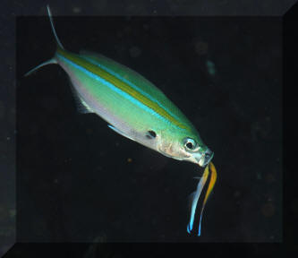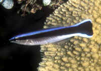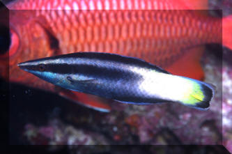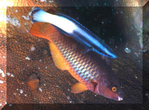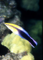 Symbiosis: Remember that fancy scientific word for "living together"? Symbiosis, oh yeah. As you'll recall there's all sorts of terms describing kinds and degrees of symbiosis; parasitism, mutualism, etc. depending on who's doing what to whom to whose benefit(s). Cleaning symbiosis involves two different species getting together for mutual advantage, the host having parasites and necrotic tissue removed, the cleaner deriving nutrition and probably protection from predation (just try taking those two wrasses from that moray). Cleaners are further classified as being obligate or facultative. Facultative cleaners do their cleaning and therefore nutrition more or less as a sideline, able and willing to seek other non-parasitic food sources. There are many examples of these facultative part-timers; several angelfishes and butterflyfishes as juveniles, the senorita wrasse (Oxyjulis californica), the Chromide cichlids (sic Etroplus). Obligates: Obligates by definition get all or virtually all their nutrient from their cleaning activity; various species setting up permanent cleaning stations with "customer" hosts coming in for regular grooming. Experimental removal of some of these cleaners has demonstrated their immense importance as parasite controls. Local and even large pelagic fish populations are quickly negatively impacted by their removal. Fish populations drop or migrate and remaining fishes lose fitness as measured by increased external parasite loads, sores and torn fins. Casual diving with the four multi-colorful Labroides species reveals that they are of limited numbers and closely defined distribution. When they are removed, the whole reef population suffers. Further, these species have not been kept for any length of time in captivity, most dying within a few days to weeks due to a lack of nutritive interaction with host fishes. I have heard stories and seen the endemic Hawaiian cleaner, Labroides phthirophagus accepting dry prepared, freeze-dried, fresh and live foods, still only to waste away and die. If you want to "practice" on cleaner wrasses, the blue, black and white lined Labroides dimidiatus is the one species that seems more facultative. If you're just looking for a biological cleaner for their services or novel behavior, please consider shrimps in the genera Hippolysmata, Periclimenes, or cleaner gobies. They do the job and do well in captivity, with much less deleterious effect on being removed from the wild. Imagine going into town for a haircut, a manicure, for medical or dental care only to find these personal services unavailable because some foreign species has hauled off all the providers... Or visualize that you're furnishing these dispensations and now instead of innumerable customers you're translocated to where there are a mere handful. You'd be bugging them all the time, to their annoyance. Think about this every time you cast your vote by buying livestock at the fish store. The obligate cleaner Labroides wrasses should remain in the ocean, and you should knowingly spend your money on hardier species. Bibliography/Further Reading Burgess, Warren E.. 1981. The Genus Labroides. Tropical Fish Hobbyist 2/81. Fenner, Bob. 1990. Cleaning Symbiosis Among Fish. Freshwater and Marine Aquarium 7,8/90. Fenner, Robert. 1995. The conscientious marine aquarist, with notes on Cleaner Wrasses. TFH 5/95. Nelson, Joseph S.. 1976. Fishes of the World. Wiley & Sons, N.Y. Parker, Nancy J.. 1973. Cleaner Wrasses. Marine Aquarist 4(3)/73.