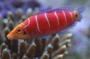 Nasty Six-Line Wrasse - 5/2/2006 Hello to all the Wet Web Media Gurus- <<HA! Happy helpers, :).>> I have developed a problem with my two favorite fish- both wrasses. After recently re-entering the hobby, I have been operating a 30 gallon reef tank for about a year. Parameters of the tank are: 76 degrees F PH 8.1 SPG 1.024 All my tests show that ammonia, nitrite/trate, calcium, alkalinity, etc. are good and consistent. <<Numbers are always helpful.>> I do a 5 gallon water change every week. <<Good to hear.>> The tank has live sand and rock, a substandard protein skimmer (upgraded SeaClone 100), <<Ouch>> a power head for circulation, some air stones for aeration, and a three stage trickle filter with a sponge, carbon, and bio-balls (which I just heard are bad???). <<Not BAD, just not a favorite of many.>> The tank is crowded- residents listed are in the order added: 1 blue/green Chromis 1 cleaner shrimp 1 peppermint shrimp 2 small snails 1 fairy wrasse <<Many species possible.>> mushrooms 1 small clown fish (1 1/2") lawnmower blenny <<Tank is much too small for this guy.>> 2 turbo snails 1 hammer coral 2" bubble tip anemone 1 six-line wrasse 3 feather duster worms Also, looks like there are some zoos, small brittles, a hermit crab, and unfortunately a tree or colt coral that all came in as hitchhikers. Now before you yell at me - I realize the errors of my ways and I am currently in the process of setting up a 72 gallon tank to house these guys. <<You read my mind! Are you running proper light/feeding the anemone?>> Here's my problem: The six-line has been bullying the fairy wrasse. <<Not uncommon.>> She has marks on her body and a small piece of her fin is nipped. <<Poor girl.>> I've pulled her out of the display and put her into a 10 gallon quarantine tank. I've tried giving the six-line a "time-out" in the quarantine, rearranging the tank, etc. Should I even attempt to put my poor beat up fairy into the 72 gallon with the six-line? I suspect that the current crowded tank is exacerbating the bullying problem. <<I agree.>> I'd like to keep both of them if possible but I really don't want to keep the fairy in quarantine for the rest of her life. Please advise. <<Get the larger tank set up ASAP. Introduce both fish at the same time, and watch them. You may need to choose one over the other, but my guess is larger quarters will go a long way here.>> Thanks, Stephanie D. <<Glad to help. Lisa.>> Mystery Wrasse and Masudes Hog... Incomp. of Pseudocheilinus and Bodianus spp. 4/8/06 I am getting a Mystery Wrasse (Pseudocheilinus ocellatus) tomorrow and want to know if I can add him to a 90 gallon reef tank. <This is a very gentle species, genus...> I have a 4" Bodianus masudai in a 90 gallon along with a few other fish. <In the same tank?... Might be a problem> The masudai has only been aggressive to one other fish (a Halichoeres chrysus that is no longer in the 90 gallon.) Otherwise he seems to leave everything else alone. I also have a 58 gallon reef tank that is only 2 months old and has two Tangerine Skunk Clowns (Amphiprion sandaracinos) and a Candy Hog (Bodianus bimaculatus). <The genus Bodianus, Hogfishes can be quite territorial...> I would really rather put the Mystery Wrasse in my 90, it is much more established, and in a more prominent area of the house, but I hate to take a chance with a $200 fish. What is your advice? Thanks, Bill Edgel <... To place this fish in yet another system... not with a Bodianus/alpha fish present... too similar in appearance, users of similar niche... Likely to be trouble in either tank here. Research before you buy... Bob Fenner> Cocoon Swallowing Wrasse 3/28/06 I have a problem with my Six-Line Wrasse. For the two weeks that I have had him he has being doing fine in my 50 gallon tank with his Engineer and Clown Goby pals. This morning I got up and was surprised to see that my wrasse was still hanging out in his sleeping cocoon. <Late sleeper?> After breakfast I saw him spit out and then suck back in a small wad of his cocoon material. <Not uncommon... some consume this...> He kept on doing this and it looked like he was choking on it because his breathing seemed a little labored. That was a few hours ago and I can no longer see the wad of cocoon that was in his mouth. He keeps his mouth partially open and swims kind of funny. He will not eat now when just yesterday he had a huge appetite for the Mysis that I feed him. <Perhaps it just over-ate?> sometimes he shakes and twitches and I think the wad of cocoon is still in his throat or something. Is there anything that I can do to help him? <Mmm, just good care, maintenance> It is now the next day and he has disappeared. All day yesterday he was acting as I described above. In the evening he returned to the hole where he likes to sleep and just sat there breathing heavily. At this point I could see more cocoon material hanging out of his mouth. I would have guessed that he spits out mucus to create the cocoon but I seems to cause him so much trouble. Around ten thirty I could not find him anywhere and have not seen him since. I just don't know what to do. He didn't look very happy at all when I saw him last. Sorry that my original query was not written well. I didn't realize that was a requirement. <Ah, yes... all is posted... I wouldn't worry here. If your other livestock and water quality are fine... Bob Fenner> Peppermint shrimp to rid Aiptasia ? Or feed a wrasse? - 2/4/2006 Hello to the crew ! I have a relatively simple 50 gallon reef, which has slowly been over run with Aiptasia. I went to my LFS and was told peppermint shrimp should do the trick, so I purchased three of them. The following day I looked for them and they are no where to be found ? <Maybe> I'm wondering what could have happened to them. I only have two fish, one being a yellow tang and the other a six-line wrasse. <The last could have consumed them> Do either of these fish have shrimp on the menu ? <Yep> I also lost a cleaner shrimp abou