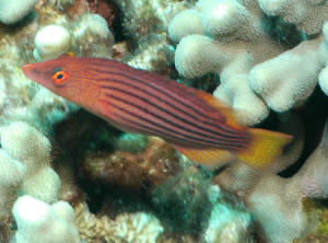Six-line Wrasse using its environment 1/29/08 Our Six-line Wrasse has an interesting behavior I would like to share with the community. When presented with a large piece of food too large to swallow whole (such as a ghost shrimp, or a shed hermit crab claw), he carries it in his mouth to a hard surface and tries to break it up by rubbing or hitting it against the surface. If his first attempts fail, he swims about looking very determined and/or pathetic with the mouthful of food. It's very amusing to watch. <Cool! Thanks for sharing with us.> -Amanda <Best, Sara M.> "Hey bob" (Pseudocheilinus) I got a question for you. I have a little 2,inch six-line-wrasse in my 40,gallon reef tank, I have about 45,pounds of live rock in the tank, I was wondering if he can feed naturally on the good stuffs on the live rock or do I have to feed him? thanks in advance, your phish friend Carlos! <Yes to both. The wrasse will feed on the live rock, and you should offer other foods daily. Please read: http://www.wetwebmedia.com/pseudocheilinus.htm. Bob Fenner> - Mystery Wrasse - <Greetings, JasonC here...> Just purchased a 5 bar mystery wrasse from Marine Center. The only other fish in the 75g tank is one percula clown that could care less about the wrasse. He's been in the tank for 48 hours now, and shows himself more now than then. However, I can only get him to eat Mysis shrimp, and only 2 at that. Otherwise, he let's the shrimp go right by. If I can't put it right in his grill, he won't chase it. He also has a white spot on his tail, only visible from one side. Doesn't look like ich because it's too large (I believe). How do you start a bottom dweller eating? <Give it time... there's a lot of stress related to capture, shipping, holding, more shipping, and then final placement in your tank. It's going to take a week or four for this fish to feel at home. The fact that it eats anything at all is in you favor.> He's about 2" long, and my tank parameters are all zeros. <Cheers, J -- > My Big, Fat Sixline Wrasse! Hi, I have a 3/4 grown 6 line wrasse. His behavior is normal, but he gets quite a bulging stomach, I am not sure if it could be because he is the only pod eater in my 55 g tank, and he spends all day picking over the rocks, but I also wanted to check if it could be worms or similar, anything I should be worried about? Thanks, Alastair <Well, Alastair, one thing that you'll find is that these guys tend to eat as much as they can, as often as they can! As long as the fish appears to be eating well, and the stomach does not appear to be deformed to one side or another, then you're simply looking at a really well-fed wrasse! If you are still suspicious, do observe the fish carefully for a while to assure yourself that the fish is behaving normally, without any potential symptoms that could indicate disease. Hope all works out well! Regards, Scott F.> New Six Lined Wrasse...What and How much to feed? Hi! <Hi Kristin, Leslie here this morning> I just bought a six-lined wrasse, it is the only fish in my tank and I don't plan on getting more fish. I have a large population of copepods right now. Since the wrasse doesn't have competition do I still need to supplement his diet with other foods? <Yes I would. Unless you have a plan to replenish the pod population or have a refugium where they can reproduce at a good rate. Scott Michael recommends feeding these fish at least 2 times a day, less if kept with live rock.> I don't want to overfeed since I have read on your site that they can eat and eat. I have frozen Mysis shrimp, frozen Prime Reef, Ocean Nutrition brine shrimp plus (flakes) and New Life Spectrum all-purpose pellets available to feed it right now. I guess my question is, which of these foods are best for the wrasse and how much/often should I be feeding it considering the copepods? I would supplement with feedings once a day. <They eat meaty foods, so any finely chopped meaty seafood would be just fine. The Mysis and Prime Reef would be good place to start. Varying the diet is very important, so be sure to offer other meaty seafoods. How much to feed is a good question. I have seen it answered many ways. I read somewhere most fish have a stomach about the size of their eye so you can estimate the quantity like that or just watch him during the feedings give a little when it's gone give a little more. Start with a couple of pieces of Mysis. Usually what they can consume in a minute or 2 should be plenty.> Thank you! Krystin <You're most welcome! Best of luck with your new charge. HTH, Leslie> Eradicating bristleworms with a Sixline Wrasse Hey we recently bought a rock with a variety of corals on it and last night realized that it was infested with bristleworms I would like to keep the population in check and heard that six-line wrasse would help. <Sixline Wrasses indeed will consume a quantity of Bristleworms. However, I see no reason for you to remove any. Bristleworms are extremely beneficial to the reef aquarium, and I would recommend 1 bristleworm of 5 hermit crabs any day. As for keeping the population in check, Bristleworms will die off or reproduce to adjust their numbers depending on how much uneaten organic debris (bristleworm dinner) is available in your tank. If you do not feed a lot, chances are that the population will die down on its own. The opposite is true if you overfeed.> But we have beautiful (unidentified) feather dusters (the fan is no larger than a nickel) and wonder if the wrasse will eat them as well. Do you have any suggestions? Thank you so much for your time. <Your Wrasse will very likely consume your feather dusters. There are certainly individual wrasses that will not, but it is a hit or miss chance. Hope this helps, Mike G.> Six Line and Pod Relationship - 01/24/06 I have a 40