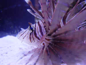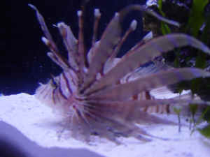Lionfish Out Of Sorts... Hi guys, <Hi there! Scott F. here today> I am having some problems with my P. volitans. I have a 200 gallon tank, pH 8-3, ORP 320, all other measurements are O.K: The other inhabitants are a small-medium Clown Trigger, a Harlequin Tusk, a small Snowflake, a Maroon Clownfish and a juvenile Emperor Angelfish. <Colorful, but tough crowd!> I've had all fish for more than a year and everyone is doing great, except for the Volitans, which from about two weeks ago began showing less and less interest in food. He seems to be breathing somewhat shallowly, but other than that no visible signs of infection or parasites. I feed him diced sword fish, shrimp, and squid. This week he hasn't eaten at all, he sort of goes for the morsel, but then tries to get it and misses. The fish does not seem to be blind as he reacts when I get close to the tank. The inhabitants do not bother him as he is much larger than the rest. Nevertheless the snowflake has been getting quite bold during feeding, and in occasion has mistakenly nibbled on some of the fish including the Volitans. <That's not too nice!> Do you have any idea of what might be happening? The fish is about six inches long. I appreciate your valuable help. Harold Chamberlain <Well, Harold, if your water quality checks out, and there have been no recent, sudden environmental lapses or changes, then we can rule out that as a possible cause. Do run a full "suite" of tests, just to make sure that everything is up to par. Your fish's' diet sounds pretty good, so nutritional "blindness" or other possible dietary problems seem unlikely. In the absence of other disease symptoms, such as scratching, obvious spots or other signs, it may be related to an occasional "sloughing" behavior that these fishes go through. These fishes tend to slough off skin on occasion, displaying some disease-like "symptoms", such as "coughing", unusual respiration, shaking, and others. This is a rather normal thing for them, and is thought to aid the fish in ridding itself of parasites and other skin maladies. it can be a bit unnerving for the hobbyist, of course! These behaviors should not last much longer than a week or so, however. If the fish continues to exhibit signs of lethargy or illness, be sure to take appropriate actions (i.e.; removal to a separate tank for treatment, etc.). However, if the fish does not appear to be declining, then I'd just stay focused on providing high water quality, a varied diet, and careful observation. Sometimes doing nothing at all is better than a rush to "treat" something that may not be a problem! good luck! Regards, Scott F> Lionfish with broken venomous spines Hi!!! <Hello there> Just a quick question - I searched your site and could not find the answer for this one... I have my eye on a black Volitans lionfish at a LFS but one of his venomous spines (the top one) is broken and is about a half inch shorter than the rest. My question is will it grow back? Thanks a bunch....Lana. <Sometimes these spines do grow back... and sometimes they don't... In either case it doesn't seem to mal-affect the Lionfish. Bob Fenner> Lionfish deaths resultant from goldfish feeding Bob, <Adam> Two quick things. Some people in my club were talking today about the dangers of feeding goldfish to lionfish because it blocks the digestive tract. Well, I searched WWM and found lots of info on the goldfish issue, but not the info I've heard you say before about what percent of lionfish die from this and the dangers to the lion. Can you give me a good link to that? Thanks <Don't have solid data, but I would "guess" a good percentage, perhaps 30-40 die directly or not so (fatty degeneration internally) from this practice... next in preponderance as a source of mortality, and important is "poor water quality" from this practice and being in too small volume, poor maintenance...> Also, we would still love to have you here in SLC this year. If a fall trip would work for you, that would be great. I plan to stay in touch during these summer months, and I'll see you at IMAC. <Will see you there, and we'll chat. Am pretty much done for 04... there are many good friends/associates here who might be willing to come out and give pitches. Would you be interested in having another of the WWM Crew make a presentation? Bob Fenner> Thanks, Adam Lionfish In Trouble Hi everyone, <Hi! Scott F. at the keyboard tonight!> I have just bought a lionfish 2 days ago and put him in my 200 gallon tank. <Yikes! No quarantine? Please do read about this simple procedure and utilize it in the future!> I also have had a small Snowflake Eel, 10 pounds of live rock, and have ordered a Blue-Spotted Stingray and a Banded Catshark. <Yikes!!!! RED ALERT!!! PLEASE, PLEASE cancel this order, unless you are 100% certain that your "Blue Spotted Stingray" is Dasyatis kuhlii, which is an infinitely better choice for aquaria. The typical "Blue Spotted Stingray" found in the hobby is usually Taeniura lymna, which is one of the worst species you can have! In fact, even Dasyatis, hardy though it may be, is not recommended for a tank under several hundred gallons. This tank is simply too small to support this fish-not to mention, the tankmates that you are considering. I'd be similarly wary of the Banded Catshark. Really belongs in a very large, dedicated system. Sorry to "attack", but I really want you to think about the high potential for failure with both of these species. Only by "just saying no" to these types of marginally adaptable species can we, as hobbyists, prevent the needless importation and death of such animals...> My problem is that my lionfish hasn't eaten since the day I got him (and that was at the pet shop). Also his side fins seem to shake and he has barely moved from one spot. Any suggestions would be wonderful. Thanks. <Well, the behavior that the Lion is showing can be indicative of a number of things, ranging from shock to the possibility of a parasitic disease. You did no