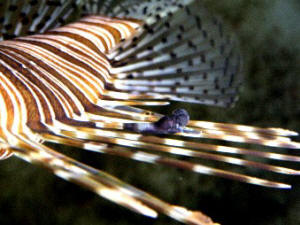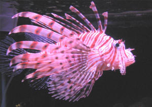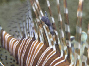 Red Volitans coloration/behavior - 01/12/2006 Hello. <Hi there> I have had a red Volitans Lionfish for about 2 months now. It is about 6" from head to tail. It is in my 120 gallon aquarium with a Yellow Tang, Niger Trigger, Harlequin Wrasse, and a couple other small fish. I have about 190 lbs. of live rock and some corals as well. All fish and corals appear to be thriving except my Lionfish which has been for the past 2-3 weeks been very reclusive, sitting in a corner on the substrate, or under a cave in the rockwork. Not coming out for feeding time like he did regularly when I first got him. <What do you feed this fish?> Also, he has taken on a very dark black coloration that covers all but about the last one-third of his body on the tail end. <Not good...> That part looks right how the color should be. I have also noticed a couple of times that one of his spine needles had been "used" as the needle was exposed. I have seen this before and know that this will repair itself. But maybe when that happens it makes them go into defense-mode and just go sit for awhile until they feel better. I'm just lost for ideas. I've fed him (in the past), jumbo freeze dried shrimp, fresh/frozen shrimp, and he even ate flake food. Not sure what's gotten into him. Thanks in advance for your help. Jason <Might be "nothing"... Might have been harassed... by the Trigger... or could be that this fish has swallowed something... like a rock, gravel... hopefully this will pass. Bob Fenner> Lionfish Ich? 12/30/2005 Hi <Hello there> Thanks for running this site, it's a goldmine. My question is, twelve days ago I bought a Russell's lionfish, put him in qt and noticed he had 4 or 5 white dots on the back of each pectoral fin where they join his body. <Mmm, were/are they symmetrical? Could be markings> I assumed the worse, Ich, but every reference to Ich on WWM says the parasite will drop off in 3 to 7 days. <Mmm, yes... but... this is part of the life cycle... they drop off... come back...> The spots are bright white, about 1/8' in diameter. <Oh! Too big to be Crypt> Do Lions have this sort of natural markings? <Yes...> Thanks Jim <Likely "nothing" to treat here. Bob Fenner> Volitans Illness - lumps 12/20/2005 Hi, I have a Volitans Lionfish and it has developed 2 white milky lumps on its tail. I think that they have appeared since yesterday as I didn't notice them when I was feeding him. They look too big to be Ich and it is only in this area. I did search the site but couldn't find anything that sounded exactly like this. <Likely either non-pathogenic tumors or encysted worms... both not easily "treated"> The lumps are just smaller than a grain of rice and circular. Water quality is fine on all parameters and the fish is otherwise healthy, no labored breathing or listlessness, it is eating fine and alert. It is in a tank with a snowflake moray and Humu trigger, neither of which show any lumps. <And shouldn't> Unfortunately I do not have the facilities for a QT tank so any treatment will have to be in the main aquarium Does anyone have any ideas and should and with what should I treat. <Yes, I wouldn't> I have tried to take some pics but have not had any success with the flash etc. Any advice is greatly appreciated. <One could try Anthelminthics (covered on WWM), even experimental surgery. I would do neither. Not "catching". Bob Fenner> Your book and bent Lion fin spine 12/17/05 Dear Mr. Fenner, <Deborah> please excuse me contacting you but I feel that you should be made aware (as I'm sure other people have told you!) How great your book is. It has been a 'bible' to me. To say I've always been interested in fish would be a lie. However, like a lot of people I got a fish tank for a birthday 5 years ago (my husband wanted one!) originally, I had a tropical set up and not by designer I ended up with a tank full of angel fish. Surprisingly, they bred well and i sold them to local shops. So the bug bit! I found, as I'm sure all true dedicates of the 'sport' do a desire to try more complex aquariums. hence, I purchased your book and now have a beautiful Berlin method marine aquarium. I say type as I've made a few modifications to the system. I'm a surveyor by profession and build bridges for a living so I can't help playing with things! I'm sure you'll understand. Much to my husbands dismay a gift has turned into a very expensive passion. Nothings too good for my fish. I took your advice on board an took it slow. I've a red Volitans, a tang and a snowflake eel at the mo. I've asked Santa for a bigger tank! My Vol's got a broken spin at the mo - I suspect the eel. Should I do anything or just let it be? <Leave it be... will heal or not> Anyway, just wanted to say thanks for a great well written book. I've written a few papers and I know that a lot of people use them but never say thanks. Best regards, Deborah ( Debs) McLintic <Do take a look at our website as well: www.WetWebMedia.com Cheers, and happy holidays, Bob Fenner> Dyin' Lion, or Just A Glitch? Grossly Overstocked System! 12/5/05 I'm fairly new to the saltwater tank hobby I just purchased a 65 gallon tank with a U.V. sterilizer, Eheim canister filter and protein skimmer. The ph is 8.2 and everything else is 0. The salinity is 1.024 and the temp is 76.2. I just bought a 7 inch lion-fish and within 4 days he started shedding his skin; he eats and swims just fine but I'm worried that it has a disease or something, can you please help me. I also have 50 pounds of live rock and 80 lb. of sand and two Clarkiis and a Saddleback and a Picasso Trigger a Snowflake Eel and Yellow Tang all small of course. <I hate to start off with a bit of a "scolding", but the tank is WAY, WAY overstocked, both now and for the long run. You have fishes in there that are not only aggressive, but are very messy eaters and prodigious producers of metabolic waste. You need a tank of at least twice this size, probably a lot more, to sustain this population for the long-term. Enough said about tha