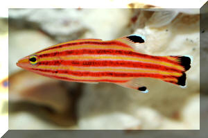 Distinctive orange stripes. Aquarium photo by Hiroyuki