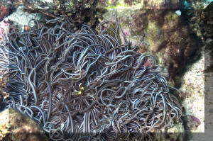 Behavior: Moving around with this species is not a good sign... A "happy" Corkscrew Anemone attaches to/through the sand and stays put. If yours is moving, it's time to be checking your lighting, feeding regimen, water quality... Though the LTA can and will occasionally deflate to a degree, amongst anemones kept by hobbyists it is likely THE one that stays engorged, full most all the time. If yours is egesting ("going to the bathroom") it might shrink down temporarily, but staying closed is a bad sign. Compatibility: