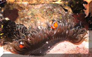 In the wild only these five species of clownfish are observed with this anemone. However in an artificial environment, artificial things happen. Tank bred clowns of naturally-associating species may not form such a partnership; and other clown species may do so... Only time, patience, experience can/will tell. Oh, and as symbiotic Anemones go, the LTA is distinct in often being encountered sans protective Clownfish guests! I have seen systems that housed both an LTA and other Cnidarians... not Anemones, but hard, soft corals et al. Orders... Such systems are best being HUGE (hundreds of gallons), well-established (at least half a year old, better a year or more), with the other stinging-celled life well-set... and the substrate space for the LTA set apart from LR, other structure. Good circulation & lighting, purposeful feed, water quality maintenance will hopefully keep the Anemone from wandering... Or your luck will hold should it go on a walk-about. This species is almost always found in shallow water (5 meters or less in depth) and thus one might consider that it requires high intensity, red-spectrum shifted light... And this is indeed so. Metal halides are suggested, though in moderate water depths... let's say half a meter or so (20 nominal inches), boosted fluorescents of sufficient wattage should do. Incandescent temperatures of 6,700 to 10,000 Kelvin are suggested. More than one LTA to a system? Not a good idea unless they're clones... asexual reproductive products. Selection: As stated, it's a rare day when you can visit a marine livestock wholesaler and NOT find LTAs to sort through... these animals, by virtue of their means of attachment (anchoring in muck and fine sand) and sturdy discs, are usually undamaged in collection, holding and shipping... Usually they're "lying down" on their sides, kept by species, grouped all in a tank... often with "outdoor" carpeting or such, to give attached species purchase... and easily picked up, scooted into a specimen container (underwater! best never to lift such soft-bodied animals into the air), and placed on the packing table... Or if at your LFS, slipped into a double polyethylene bag... Do look for a specimen that is relatively open at its disc surface, whose mouth is flat, closed (not everted/pursed or flaccid), a basal area that is entire, evenly colored (sans whitish tear marks) and of course, not torn. Systems: Though not a huge species like the Carpets or Magnificent Anemones, the Corkscrew can have a disc that opens to 500 mm (19 plus inches) across... though most top-out at about a foot or so. You need to have an open space, including area around this animal of at least this diameter... to allow circulation, distance between it and any other tankmate... Remember, this is an animal that lives in a soft, mucky bottom... so your live rock et al. hard decor needs to leave at least this foot across open space. Take a look at the pix of the wild-specimens of Macrodactyla doreensis shown here? Notice the fine, darkish material their bodies are sunk into? They live in... muddy, silty, mucky muck... with some soft sand. NOT sharp sand, crushed coral, aragonite, silica..., but roundish coral sand... And NOT sterile sand either... In sufficient depths (six inches) that the animal can (and will!) pull itself completely under/into, should it be frightened. You need to supply a similar habitat. And where does having all this mud (miraculous or not) get you? You might think, "Well, terrible water quality", but nay, exactly the opposite! And similarly, these animals don't appreciate much in the way of free/solubilized nutrient... read this as no detectable phosphate, little nitrate... In other words, and subjectively evaluated, "great water quality" is required. Given a high happiness-index, LTAs are not given to detaching, moving about... however, a very high percentage of specimens are lost due to such errant behavior, getting sucked into or against powerheads, intakes, overflows... All these must be arranged to prevent such a tragedy... with proper screening and redundancy... should one be occluded... Foods/Feeding/Nutrition: Macrodactyla doreensis feeds on small/er particles than many anemone species; from almost microscopic to a quarter inch across at most... The species is best fed with having a large, healthy refugium incorporated with its main display, or barring this, the few-times-weekly baster feeding of a mash of marine protein based foods, squirted onto its tentacles with your circulation temporarily (use a timer...) shut off. Regurgitated foods are usually indicative of too-large size offerings... Disease: Practically all losses of this species are consequent with improper environment... being placed in too small, too new a setting, with sufficient mud/soft sand, a lack of light, circulation, metabolite poisoning, a dearth of biomineral, alkalinity... and allelopathy... chemical competition. These animals are problematic in the same water as other Cnidarians as mentioned... What happens if yours is not anchored? Floating about? Test your water, check the expiry dates on your light bulbs/lamps... if need be, consider moving the animal to another system... Reproduction/Propagation: Macrodactyla is not a good candidate for artificially fragmenting. It just suffers too much for the abuse. However, natural fission events, though not common, do occur, with one animal splitting into two... or asexual fissioning, breaking off a piece of the body distinct from its parent, developing a new disc and tentacles. Cloze: Not as easy to accommodate as a Bubbletip (Entacmaea quadricolor), or even a Sebae (Heteractis crispa), the LTA does have some specialized needs... At least it's not as stinging and large as the Carpet Anemones... If you have the room, deep/dirty sand, a yearning for a spectacular bottom-dwelling show-piece... perhaps Macrodactyla is for you. With or w/o hosting Clowns, the LTA is a beauty.