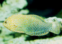species. Regards, EricR>> Splendid Leopard Wrasse 10/27/06 Hi there <Hello> I am thinking of getting a bigger tank and was just wondering how hard splendid leopard wrasses are to obtain, look after and feed. <Toward the ends of the scale for marine fishes... not easy> I have been reading about them but have not found much concrete info. <... please see WWM re the genus Macropharyngodon> I really want one of these spectacular fish. Could it be housed in a 80 gallon tank if I provide it with three inches of sand bed and plenty of live rock, live sand, an abundance of copepods and other peaceful tankmates. <Mmmm, maybe> Also I was wondering whether tangs in general are aggressive or would harass other fish such as the splendid leopard wrasse. <... see WWM re...> Thank you for all of your help from Viv <BobF> Goby and wrasse questions... Champagne livestock tastes, Bud tank 8/23/06 Hi. <Hey there!> I have a 45 gallon tank with the following critters - a clownfish (currently residing in an anemone), firefish goby, pajama cardinal, diamond sand goby, scarlet cleaner shrimp, some Christmas tree rocks, some coral frags, some snails and a scarlet legged cleaner crab. I saw a beautiful fish the other day, the store rep said it was an African Aurora Goby which I think is called Amblyeleotris aurora?) <Maybe> and he priced it at $80. <Man! I got out of the fish collection biz much too soon!> I looked on an internet site and saw something very similar but it was called a Pinkbar goby (for $30), and it was listed as originating from either Indo Pacific or Maldives, aka Cryptocentrus aurora. They look so similar to me, is there any difference? <Mmm, nope... try putting both names into fishbase.org...: http://fishbase.sinica.edu.tw/Summary/speciesSummary.php?ID=12694&genusname=Amblyeleotris&speciesname=aurora is the same species... is an Amblyeleotris> And is there a difference between the Indo Pacific one and the Maldives one? <Mmm, maybe slight geographic variation in color, markings... and likely cost... the further away... the higher> Also, are they hard to keep, and will there be any compatibility problems with my current fish? <Your 45 may be too small to provide sufficient habitat for this shy species to "feel comfortable"... Do you intend to supply an appropriate Alpheid symbiont? I also saw a lovely leopard wrasse; again, would there be any compatibility or feeding problems with this fish? Thanks for your time, Ak <I would not encourage someone to try a genus Macropharyngodon Labrid in such a setting. Bob Fenner> Reclusive Leopard Wrasse... I just purchased a leopard wrasse. Everything seemed to be going well for the first hour or so then I noticed my red spotted Hawkfish starting to get a little territorial and chase a little. <Unfortunately, this is not uncommon behavior for the Hawkfish...These guys share common niches, and there will be some initial squabbling. Is this after you quarantined the fish? Please do quarantine all new acquisitions in the future, for the health of your new and existing inhabitants...Quarantine is especially useful for finicky eaters like Leopard Wrasses, which are often malnourished from the rigors of capture and shipping. If nothing else, quarantine serves as a "hardening" period for them.> I proceeded to try to remove the Hawkfish for a short period until the wrasse could get acclimated but I could not catch the fish. I returned a few hours later and have not seen the wrasse in about 8 hours. I checked behind the tank and no luck. I have a glass top that covers all but about an inch and a half of the back where the return exits the tank. Any recommendations? Do they have a tendency to bury for a period before getting acclimated enough to come out or do you think the Hawkfish has driven it crazy? Thanks, Chris <Actually, Chris, these wrasses are known for literally burying themselves in the sand for extended periods of time while acclimating to a new situation. They are notoriously reclusive at first, but will "come around" over time, once they feel comfortable and are aware of no threats. Do keep an eye peeled. Again, because of the relatively delicate nature of these fish, quarantine really helps. Not everyone is successful with them. For more information, do read up on the WWM site about these fish. I also recall an excellent article about them in a past issue (like 2-3 years ago) of Advanced Aquarist online magazine that had some great insight into their care. If you can meet their special needs, these are wonderful, unique fishes! Best of luck! Regards, Scott F.> Doomed leopard wrasses? hi everybody, I think the leopard wrasses, especially the guinea fowl wrasse is super beautiful. however, after reading your description it sounds kind of like they are similar to mandarins: very difficult to keep. I have a 125 gallon reef. I don't have a mandarin because I just don't like keeping anything I can't feed. I just don't want to rely on my reef to supply all their food. do leopards eat frozen food, etc? if they do, do you think they would mix well with a solar fairy wrasse and a tricolor fairy wrasse? ps. tell Anthony I am eagerly awaiting his next book thanks, john Kim ***Hi John, Some people have success with this fish, but not enough for me to feel comfortable recommending one for your tank. Sounds like you have a pretty good handle on the reasons why. There are so many beautiful, hardy fishes that do well in our tanks, no reason to take chances on a fish that in all probability will not adapt. Regards Jim*** Macropharyngodon ornatus - Telling male from female Hi, Can you tell me if there is a way to differentiate male from female Ornate Leopard Wrasses, Macropharyngodon ornatus? I checked the WWM FAQs and found a great picture of my wrasse in Bob Fenner's article "Leopard Wrasses, the Genus Macropharyngodon". It looks exactly like the lower of the 2 pictures of the M. ornatus. I've also found information on how to tell the difference between male and female M.