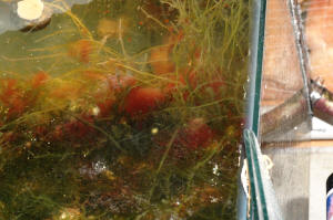 Nitrates, Phosphates, and Macro-algae question 3/6/07 Greetings, Crew! Hope everything is going well! <Hello Mina, sorry for the long wait. This is the fifth time I have tried to reply, let's see if it works.> We are writing to you with hope of getting some of our questions answered. Basically it has to do with nitrates. Yes, we have read most of the Nitrate FAQ's, but we're still having some difficulty piecing things together, and hoping you would be able to shed some light on the right path to follow. So, here goes: We have always understood that the goal is to reduce nitrates and phosphates as much as possible in a reef aquarium, but we can't seem to keep the nitrates down. System: 55 gallon tank (set up since August '06) 80 lbs live rock 25 lbs live sand 50 lbs crushed coral 500w Halide 220w PC (110w Actinic - always on, 110w 10K - off when halides on) 40 gallon sump (25 gallons of which is refugium) 50 lbs live sand small skimmer 110w PC (55 10K & 55 Blue) Parameters: pH 8.2 salinity 1.023 temp 78 deg F Alkalinity 10 dKH calcium 420 ammonium/nitrite 0 ppm phosphate 0 ppm nitrate 20 ppm and climbing Livestock: Yellow Tang, Coral Beauty Angel, Diamond Goby, Copperband Butterfly <Fragile. Watch this guy. Beware of hunger strikes.>, Yellowtail Damsel, two Clarkii clowns (one in the main tank watching the corals, and one in the refuge (banished for stealing food and abusing other fish), chocolate chip star (refuge), black brittle star (main tank), coral banded shrimp (main tank), and arrow crab <Watch him with the clown.> (refuge). Chaetomorpha in the refugium (medium sized piece). The corals have all been growing well (zoos, mushrooms, SPS, LPS, xenia). They had been dull in color under the PC lights, but now are showing intense colors since we added the halides and put in new actinic bulbs. We try not to overfeed the fish or the corals (0-2 times per day), in fact our sand sifting starfish just died (most likely from starvation). The orange diamond goby digs like crazy looking for food and the sand is very clean. The water looks clear as crystal, though removed water during water changes looks yellow. I've typically changed 15 gallons once a week, though last week I changed 40 gallons in an attempt to reduce the nitrates from 20 ppm. It only dropped to around 15. A week later it is back up to 20 again. <This is due to the activity of bacteria.> The algae in our tank grow very slowly (a small amount of hair algae in the main tank, the cheto <Chaeto> in the refugium) except for the corraline <Coralline> (red and purple) which has been increasing on the live rock quite well. It is my understanding that green algaes <algae> require both phosphates, and nitrates to grow. The fact that our phosphate level is near zero (due to RODI water use?)<Possibly, more likely your Alk, and Ca levels, and the fact that the algae are using what is left.> probably explains the slow growth. Here is the question . . . if nitrate export through cheto <Chaeto> growth is desired, isn't SOME phosphate required? <Yes, and the algae are using it.> Am I not fighting a losing battle with the nitrates <You said that you only had one piece. How much damage can you do by yourself at a buffet? Add more.> if the alge <algae> can't consume them due to a lack of phosphate? <The two are not interrelated. The algae are fixing the NO3, you just have more NO3 than the algae can consume.> I know it sounds crazy to think about deliberately adding phosphate to the system, <You do every time that you feed your fish.> but it almost seems that that's what I would need to do to get the cheto to grow and thus reduce the nitrates. What do you guys think? Does the tank need more time to mature? (The majority of the live rock came out of a matured tank) Do we need more rock? Or maybe we need to change the ground medium (from crushed coral mix to all-sand bed?) <Adding enough sugar fine sand around the live rock to bring the sand bed to about four inches will help out with the NO3 consuming bacteria. Clostridium I think?> We're not looking forward to breaking down the tank (nor do we want to) <Nor do you have to.>, but the corals need the nitrate level to stabilize below 10. <Corals use NO3 too.> Any ideas? <If you are using media like bio-balls, or bio-wheels slowly remove them, as they are NO3 reactors, also clean all filter media weekly. Wash out the pads well with tank water. This will preserve the bacteria on them. Also use activated carbon, and PolyFilters. Rinse these out weekly with tap water. The Carbon two to three ounces changed weekly, and the PolyFilters can be replaced after three months. This should help.> Appreciate the help! <Any time. Brandon> Regards, Rich & Nina Macro algae lighting: ?'s 9/28/06 Is 130w of 50/50 (10k:Actinic) power compact on a standard 55 gal enough to keep it thriving? <For? What sorts of organisms, purposes?> What would be the best choice to go in a display 55? Grape Caulerpa; Chaeto I want to grow some macros to naturally knock the nitrates and phosphates down in my tank, to next to nil I just cant seem to drop to lower than 5-15ppm ever, it's a FOWLR with hope of anemones and a few leathers maybe...any suggestions, <Chaetomorpha over the Caulerpaceans... a refugium... anemone, not anemones> My setup is a 55gal standard Fluval 404 fully loaded with 1 Purigen, and 2 ½ cups carbon etc (bio-media) , a marine land 200 with carbon only, 260w compact fluor fixture, but only 130w 50/50 on right now, 70 lbs beautifully aging LR and about 4 inches LS assorted critters 1 sand sifter, 16 hermits & 3 emerald crabs, 8 Nassarius snails, 5 baby small asst damsels 2 maroon yellow stripe clowns and a lawn mower blenny, I want to advance this aquarium to a reef, but cant get my nitrates to drop, <The canister, more... Please read here: http://www.wetwebmedia.com/nitratesmar.htm and the linked files above> had a skimmer (Berlin Air lift 60) for a while with no drop in the nitrates so I took it off after 3 mos. What 
