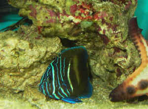 - More on Blue Angels - oh how wonderful life is with aquaria in hand and doing life's work, without shoving it back to you, and saying here take this you... i have to ask cheers j- are you female or male not that i care but curious!!! <Last time I checked, I was a male - J is short for Jason.> your advice {splendid indeed master splinter} ! i did as you requested and ordered bobs book the conscientious marine aquarist, should be here Monday! <Excellent, I think you will enjoy it.> i really have a question about my blue angel, or my queen angel you see the blue angel has lines that curve back toward the tail and the one i have although 4 inches in length just body not tail look to be straight, and another thing that leads me to believe it is a queen is the dorsal fin from front to back is neon blue as is the fin from front to back on the underside of him is neon blue, and from what I've been reading the adult blue has no blue color! <Hmm... that doesn't happen for quite a while... give it some time and you will see. More on the Holocanthus angels here: http://www.wetwebmedia.com/marine/fishes/angels/holacanthus/index.htm > i paid 68 bucks for this blue angel so they say, but did i get a blue or did i get a queen? <Hard to say without a photo - I'm guessing by your description that this fish still has it's juvenile colors.> if i got a queen i need to hurry and get a 400 or 5 hundred gal tank right? <No hurry, they don't grow that quickly but either way, both of these fish get considerably larger than four inches and if you want to keep it for a long time, a larger tank will be in your future. Cheers, J -- > Which fish on What Book? >Hi, I just want to know what kind of fish on the cover of the book that red and white stripe like peppermint and where can i buy them and how much they usually cost? thank you very much.................Tony. >>Hi Tony. Your message is a bit difficult to decipher (no punctuation). It would be helpful to answer your question if you A: used punctuation, and B: told us what book you're talking about. The only book that Bob's written that I know of that pictures an angel of any kind is "The Conscientious Marine Aquarist", and the fish pictured is a dwarf angel, Centropyge loricula. It is not red and white striped. The only angelfish that *I* know of that's colored in such a manner has a rather dismal record of survival in captivity, and is very infrequently offered for sale. Coming from rather deep waters means that you may be looking for an animal that's several hundred dollars (though I've never purchased or procured one for someone). Hope this helps! Marina <Likely the Peppermint Angel on Allen, Allen and Steene's latest Angel and Butterflyfish tome. RMF> "I should be on Jeopardy!" - Don't buy it >Hi, I'm sorry, I saw the fish on the book "A Guide To Angelfish and Butterflyfish", by Gerald R. Allen, Roger Steene, and Mark Allen . The red and white stripe fish on the cover of the book, hope you can help me who selling the fish and if you can you give me the common name and the scientific name of this fish? Thank you very much....Tony. >>Well, this gal knows a Centropyge when she sees one, and sure enough, it's a Centropyge boylei - Peppermint angelfish. It's a deepwater dwelling fish, NOT suited for aquaria, and as you'll see in the FishBase link (and I quote) "Never or rarely exported through the aquarium trade ". So, the answers to your other questions would be, in order, no one, not at any price. If you do run across it, I would leave it, as, like other deepwater Centropyge, it tends to not only be incredibly shy, but even if it feeds, nutritional needs are never met and it still starves to death. Marina <<Ah, yes>>
