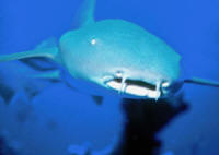 In The Darkness of the Night: If you're not afraid of the dark or the Tiger Shark (Galeocardo cuvier) behind you, a bunch of fishes and money can be had by "picking them up" while they "rest" on the ocean floor. Most everything can be gotten this way. Notable examples include the soft bodied Achilles tang (Acanthurus achilles) which is easily damaged while thrashing around in a barrier net during daytime, and the otherwise dangerous-when-large Naso Tangs (here Naso lituratus' all and working end), Parrotfishes, family Scaridae, (here a sleepy Scarus ghobban, in its mucus cocoon, and a similarly dozing Rabbitfishes, family Siganidae (here Siganus spinus). Though not great pet-fish, even expensive Morays, family Muraenidae like the Dragon (Enchelychore pardalis) can be picked up (in their case with a net) relatively easily while they're out and about foraging at night.