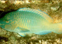 Undesirables: A note regarding varieties you don't want in your fence net, Triggerfishes, family Balistidae, like bullets such as Xanthichthys mento; and Parrotfishes, family Scaridae, here a male Stoplight Parrot, Sparisoma viride, and Sharks, here a "baby" Reef Blacktip, Carcharhinus melanopterus, are real nightmares, chewing a hole that the rest of your catch swims through, otherwise destroying your net and workday. All three have swum through my collecting nets...