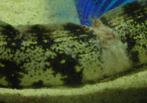 If Adding Salt, One Must Also Add Knowledge... 1/11/07 Hi <Hello John, Mich here.> after owning and maintaining a freshwater tank for three years, I decided to try a marine tank. <Welcome to the briny world.> I set it up, and did what I think was doing everything right. <How did you know what to do?> But about a week later, every living thing in the tank died at the same time. <Sorry for your loss.> Six creatures died. <That's a big loss.> I was wondering if you could tell me what happened. <Well, more information would be helpful, but with what you provided, my assumption is that you did not cycle your tank and your animals died because of this. Unfortunately, their death may have been caused by your ignorance. The concentration of toxic ammonia would be peaking after about a week, which would fall into you time frame. Nitrite, which is also toxic to livestock would soon follow. Generally it takes at least a month to go through this process. How much reading have you done? There are many differences between freshwater and saltwater aquarium keeping. If you want to venture in the marine world, you will need to make a big commitment to educating yourself to the system requirements and the livestock in your care. My first recommendation to you would be to read a book called "The Conscientious Marine Aquarist" by Robert M. Fenner. If you only buy one book this is the one to buy. There is also a tremendous amount of useful information on this website. Here is a list of some suggested readings. When you've finished the list, please realize that this is merely drops in a bucket and that you must continue to educate yourself to the complexities of this hobby. http://wetwebmedia.com/fw2mar.htm http://wetwebmedia.com/marineSetUp.htm http://wetwebmedia.com/marsetupii.htm http://wetwebmedia.com/AqBizSubWebIndex/marsetupho.htm http://www.wetwebmedia.com/marine/setup/filtration/biological/biofiltr.htm http://www.wetwebmedia.com/estbiofiltmar.htm http://www.wetwebmedia.com/ca/volume_2/cav2i5/Filtration/Filtration.htm http://www.wetwebmedia.com/quaranti.htm http://www.wetwebmedia.com/QuarMarFishes.htm http://www.wetwebmedia.com/ca/volume_3/cav3i4/quarantine/Quarantine.htm <Good luck to you, Mich> John Heelyer Maroon Clown Fish's Face is Rotting Off!?! Env. dis. 12/19/06 Hello- Looked through questions on your site and couldn't find one that mentioned this particular problem. I have a pretty large (4-5 inch) maroon clown. He was healthy as could be in my 55 gallon with only one other resident (a porcupine puffer). <Incompatible... and not enough space for a Diodontid...> Tank parameters are fine, feeding and breathing habits, all fine. I noticed what looked like a gill infection about 2 months ago. It seemed to be spreading from the inside out in sporadic bumps. They open up into cauliflower like growths, and then he loses skin around the area. He is now literally missing skin and the rest is shredded and torn up. <Environmental in cause/cure> In the beginning, I took him to where I got him and asked their advice. They said it was an infection and to treat him in a hospital tank. <... dismal> Which I did, for a week. NO improvement. I treated him with an anti-bacterial. Then gave it a rest and treated him with an anti-parasitic. <Why?> A freshwater dip merely stressed him out, and didn't change anything, either. Putting him back in the main tank seemed to help him out for a couple days, but alas, he is now worse than ever. He is swimming around and eating and breathing fine. No lethargy or any other signs of sickness. I am thinking this is just a chronic viral infection. <...> Could it be that he got this from eating a bad clam that I had unknowingly put in the tank? How can I help him out? I don't know what else to try?? <What re your set-up, maintenance, water quality tests, testing? Please read here: http://www.wetwebmedia.com/marenvdi.htm and the linked files above. Bob Fenner> Power Outage/Oxygen Loss - 10/28/06 Hello, <<Howdy>> Last weekend, a fuse blew in the room where I keep my aquarium. My girlfriend came home from work to find the temperature at 73 degrees (I keep it at 79) and all the fish gasping near the surface. <<Lack of oxygen...either the power had been of for quite some time or the tank has an excessive bioload>> She turned everything back on and the fish came down from the surface and the temperature gradually rose back to normal (I realize that a slower increase in temperature would have been preferable, but I wasn't available to deal with the situation at the time). <<I see>> I came back after being out of town for 3 days to find that my pygmy angel had been killed by ich (no surprise) and my red general star was pretty much just a pile of goo. <<Hmm...I wouldn't think a temporary drop to 73-degrees to be all that problematic. I have heard of/experienced lower drops during extended power outages without loss of life>> What I'm concerned about now is that my snowflake eel and my Sargassum frogfish are both still very lethargic and not eating (the temperature drop/rise happened 5 days ago). The eel barely comes out of the rocks; but when he does, he seems very weak and sluggish--and not at all interested in any food I offer. The frogfish has been laying around on the bottom--often on his side--gasping regularly and not eating. Is there anything I can do besides sit and wait at this point? How long should I expect for it to take for them to return to normal if they're going to recover? <<I think there is something else wrong here. Have you performed any ammonia/nitrite testing? The fact your fish were gasping at the surface suggests massive oxygen depletion, I'm betting your biological filter was severely damaged and the fish are being poisoned. A series of large water changes and the addition of a bacteria culture (either seeded from another healthy system or a commercially available product) should help>> Also, the frogfish looks pretty uncomfortable; is there a point at which I sho