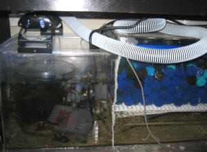 I have a simple question, is a Magnum 350 Pro with Bio Wheels enough for a 55 gallon tank with a snowflake eel and a niger triggerfish? 8/23/07 <I have a simple answer: No... and this volume is too small for a specimen of either species... See WWM re... Bob Fenner> Freedom Filter update? 8/1/07 Brand new to the hobby, even newer to the site, love it by the way. My question is about the Freedom Filter. I have a 55g tank with some live rock, a couple chromis and some snails, hermit crabs, and an emerald crab. On the advice of my LFS, I had to get a canister type filter <Mmm, am not a fan for this application... see WWM re> because I have no access to the back or sides of my tank. <... can be moved...> It is not drilled either. They recommended the Freedom Filter, as they said they've had some success stories with it. <Mixed> My tank is almost 4 months old, and all my levels (SG, nitrate, nitrite, ammonia, pH) are almost perfect. The only problem is the surface filtration, leaves a bit to be desired. <Mmm, you can/could rig a surface skimming attachment to the canister...> My question is, aside from opinions on how it might work, does anyone have any knowledge of whether or not its a viable solution for a tank? I would love to be able to do more with my tank, expand its inhabitants and what Im able to keep, but I can't (to my knowledge) have a sump or refugium (unless they could possibly be put above the tank somehow on a shelf or some similar setup. (My current tank sits on a custom fabricated steel platform that sticks out of the wall above my bar) <I see> I would love to know if there's any tests or other write-ups about the success of the Freedom Filter. Thanks a bunch for your time, and again LOVE the site! -Kris Mortensen <Worth trying... likely in addition to the canister. Better to drill the tank though, remote filtration (sump, refugium, skimmer in these...) elsewhere and pump water back to the system. Bob Fenner> Re: Freedom Filter Update? James' much better input 8/2/07 <Hi Kris> I can give you my experience with the Freedom Filter first hand. I have experimented with the filter and found the following: The surface skimming is marginal at best, and in order for it to work, the skimmer must be removed and a flow regulator must be adjusted. The system draws most, if not all of the water from the bottom, so there is very little surface skimming that takes place. The skimmer, in my opinion, is not very efficient. As to the "self cleaning feature", I cannot understand how this could work. I had to clean the sponge quite regularly. I can say that my nitrate levels did not increase while using this filter for a period of three months. I removed the filter at this time because without efficient skimming and surface skimming, the power consumption was not worth the results. I have read good reviews on this system from various sites, so keep in mind that my comments are strictly from my experience with the filter. Bottom line in my opinion, for the cost of the filter and Rio 2500 pump, I believe a good canister or wet/dry filter would do as good a job. I've also contacted the company with a suggestion and drawings as to how this filter could be improved with little manufacturing cost. I received an elated reply from them stating it was a great idea, and, even to the point where I would receive royalties from this idea. Never heard a thing since then, and no replies to my emails. James (Salty Dog)> Refugiums vs. Wet Dry 7/27/07 Hello, ladies & gents, <Howdy> So far I've gone from inept to slightly less inept from reading your info, it has been a great asset. I've been a frequent writer, unfortunately but it is paying off huge dividends in our aquatic household. On my 200 gal I now have a Fluval FX5 with just biomedia, a Fluval 404 with just biomedia, a large 200 gal rated protein skimmer, and a large hang on power filter that I use for mechanical and occasionally carbon filtration. I would say there are 100lbs of live rock and about a 3" sand substrate bed. All water parameters are good, at 0 ppm of ammonia & nitrites, <10 ppm nitrates, and a PH of 8.2. The quick fish recap is the young banded cat shark, passer angel, yellow tang, powder brown tang and dogface. No other fish will be added. I had initially planned on putting a wet/dry on the system, but had to wait until now to do it. I have room under the tank for either a good sized refugium or wet/dry filter. I have read so much of the FAQ, seems both are beneficial. What, do you think, is a quick summary of which is better, and why? <The only function a trickle filter is superior at is rapid nitrification. Does nothing else really> Some refugiums have a small biomedia filter section, but it wouldn't seem to have near the capacity of a full fledged wet/dry filter. Anyway, I think this would be a nice equipment addition to the system, so I would like your input as to what would be the better investment. Thank you kindly, Thomas Roach <Please read here: http://wetwebmedia.com/marsetupindex2.htm re: Rationale/Use of both. RMF> Do I Have Enough Marine Filtration? -- 07/11/07 Hello Folks, <<Hiya Jim>> Just found your website and have to say I'm amazed at the amount of information you dish out. <<Indeed...much to be discovered here>> I am in the process of setting up a 210-gallon display piped down to my basement. <<Neat>> I'm running first through a 55-gallon USP water drum to increase the overall volume, then to a 20-gallon live-rock sump/refugium with a bio-tower and finally to a 25-gallon algae sump where it dumps to the protein skimmer and returns to the display. <<I see>> I have not included any type of filtration other than bio-balls and natural in the system as of yet. Do you think this is necessary or should I run for a while and see? Thanks! <<If by 'natural' you mean live sand/live rock then this may well be sufficient...and depending on the type system you plan, you may find you don't want to use the bio-tower w/bio-balls. Do start 