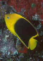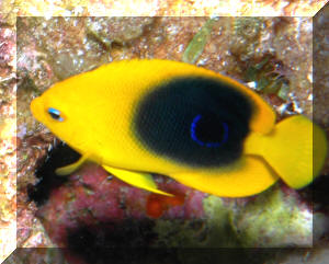 Apparent Health: This is one of those species of marines that small tears in fins, blemishes on the body, fin bases can spell real TROUBLE. Examine prospective purchases very carefully. Damaged ones very often "go down hill" very quickly. Look to the animals behavior as well as indicative of its internal and mental-emotional health. Buyable specimens are bright, alert, with clear eyes, erect fins, moving about, aware of your presence. Feeding? You hope... though this isn't a probability with most imported individuals (they generally don't readily feed at first in captivity), it is a very good sign that the one you have your eyes on is accepting or at least curious re offered foods. Time On Hand: The Atlantic Rock Beauty is part of the minority of livestock choices that should not be "left at the dealers" for a grace/rest period. In the vast majority of cases, delaying, leaving the specimen at the dealers will only lengthen its starvation period, subject it to more stress, weaken its immunity. If you have done your homework, set-up a system to suit its needs, do be diligent about its acquisition. Order, otherwise have your LFS contact you when they receive their shipment, go there, observe the new arrival/s and pick up your specimen. Similarly I don't encourage a quarantine period for this species. The trauma, continued loss of health from very probable non-feeding is not worth the trade-off in communicable disease prevention. Environment: Habitat: Larger (a fifty five is a minimum for a too-small individual, a hundred gallons for a three-four inch one) is better for this species, as is wider. A stockier shaped system is better suited to allow rock work, other decor and non moving invertebrate livestock for their use. Being able to "get away" is important as is having nooks, caves to sleep in at night. Vigorous life on well-established live rock is mandatory. Macro-algae that hails from the region (http://wetwebmedia.com/maralgae.htm) Chemical/Physical: Rock Beauty's appreciate NSW conditions. Near Sea Water... Clean water that is well-aerated, filtered of natural specific gravity (near 1.025, they do not like artificially low spg.), pH (8.2-8.4), alkalinity etc. Detectable levels of ammonia, nitrite, and very little nitrate are likely not to be a problem in such a system described. Higher dissolved organic concentrations can/do lead directly to loss of vigor, loss period. Temperature is best in the mid to upper seventies F. Once again, in a larger system it should be easy to maintain a steady thermal regime. As always, using two or more smaller wattage heaters rather than a single large one is good insurance against varying temperature. Yes, they're touchier than the average marine. Behavior: Acclimation Properly placing a Rock Beauty is simple... stipulated that its environment has been set up properly, aged for a few months. With dimmed lights, and the light off in the tank, either a drip method or occasional addition of water from the system technique can be used. Leave the aquarium lights off for another day so your Rock Beauty can "learn" the placement of objects in the system. If other species of fishes are going to be sharing the tank, it's best that they're placed in order of smaller, very easygoing first, larger last, after your Rock Beauty. Territoriality/Predator Prey Relations, Other...: This is a quintessential shy, retiring species, that under the best of circumstances can be expected to hide a good period of the time. It's easily over-stressed by crowding, or placement with aggressive species. Ideally your Rock Beauty will be catered to, made the center of attention of your/its system, at the zenith, co-placed with other western Atlantic species of an easygoing nature. Triggers, other Angels, including more than one Rock Beauty should be avoided. Reproduction: This species is known to be a synchrononous protogynous hermaphrodite, individuals becoming females first, then possibly males with growth, age. The breeding harems involve one male, a few to several females over a wide-ranging area (a few hundred square yards).