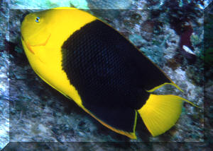 Of the eight species of marine angels of the genus Holacanthus, likely the most commonly offered in the pet fish trade is the Atlantic Rock Beauty, H. tricolor. There are many positive traits, characteristics going for this species. It's beautifully colored and marked, intelligent, of a gorgeous, graceful body and fin conformation. And as a bonus to collectors, cost to hobbyists, it can be found and collected in good numbers in its wide range in the tropical West Atlantic. The one real downside of its captive care is the Rock Beauty's dismal history of survival in captivity. Easily half are lost within a month of capture in the wild. There are reasons for the low survival of this species in captivity, mostly having to do with a lack of ready, acceptable food, along with the usual vicissitudes of collection, holding, shipping trauma. My intent here is to grant you insights about the wild-environment of this species in an effort to either forestall your haplessly trying this difficult angel (steering you to more hardy ones), or provide you with useful information on how to provide for its captive husbandry. Classification: The Rock Beauty Angelfish (family Pomacanthidae) is a member of the genus Holacanthus ("grooved spine"; "tricolor" for the yellow, black and blue eye-highlights) which includes eight described species, four each in the tropical Atlantic and Pacific. Other aquarium species of this genus are the Passer, Clarion, Queen, Blue, and on rare occasion Holacanthus limbaughi. H. africanus is a rarity in the West. The Bandit Angel, H. arcuatus, a Hawaiian endemic is unfortunately offered in the trade quite regularly. It rarely lives for any period of time. Natural Range Tropical western Atlantic; Georgia , Bermuda, the northern Gulf of Mexico to Rio de Janeiro, Brazil. Size: To about eight inches total length in captivity, recorded to fourteen in the wild. Selection Criteria: Size Counts! As with the childhood tale of "Goldilocks & the Three Bears", most wild-caught wildlife has a "too small", "too large", and "just right" range of sizes that are best to select for. Too little specimens take too much of a beating in being caught, held, not-fed (typically) and transport through supply channels to "end users" like aquarists. Too big ones are too often lost for most of these same reasons, plus their steadfastness to wild diets, adapting poorly to conditions of confinement. The "just right" size range for the Atlantic Rock Beauty is somewhere in the 3-4 inch or so range (overall length).