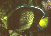 All nine species of Red Sea angelfishes are imported into the trade, but only a few (Pomacanthus asfur, Pomacanthus maculosus) are regularly brought into the west. The others are better or only available from the region, but of considerably more expense due to related higher costs of collection, holding and transportation. But don't let me leave you with a false impression, the same species and the endemic (only found there) are BEST from the Red Sea; hardier and more beautiful than from anywhere else; well worth the extra charge. Selection: General to Specific Size: Very generally; for small species get one that is 2-3 inches in length, the genera of larger angels, about 3-5 inches. Smaller individuals tend to be too beaten up in the processes of collection and transport and too-big one's adapt poorly, refusing food and displaying undesirable behaviors like bullying. Very generally; for small species get one that is 2-3 inches in length, the genera of larger angels, about 3-5 inches. Smaller individuals tend to be too beaten up in the processes of collection and transport and too-big one's adapt poorly, refusing food and displaying undesirable behaviors like bullying. Reddening: Bloody color around the mouth, fins or body flanks is definitely a bad sign. I would not consider such a specimen for purchase. The scales should be flat, smooth and clean on the body. Eating: Ask to see if the specimen is taking the kinds of foods you will be offering it. Ask to see if the specimen is taking the kinds of foods you will be offering it. Location of Capture: Huh? "I thought we were talking about the Red Sea here?". We are; but how can you tell the animal you're looking at comes from there? Trust an invoice? The price? No; instead you should study up. You will be able to discern from appearances the differences yourself. These fishes are that much better looking. Look through reference works and/or take this magazine with you. Cost: A few remarks here concerning pricing and sources of Red Sea livestock. For the lowest landed cost, you may well be tempted to "mail-order" these fishes (They ARE still expensive). Be prepared to pay for related costs, have your system ready and means of meeting the transport. Alternatively, you may be able to coax a more local dealer into ordering and possibly tanking them for you, for a while. It may be necessary to front a sizeable, non-refundable deposit for this service, but well worth the cost of having them as your go-between. The last scenario may exist for some lucky types who are near stores with standing inventories; these animals will most likely of the highest cost... however you will A) be better assured of their origins, B) have a leg to stand on in first person, for warrantee, and C) will be getting the most-aquarium acclimated specimens. Environmental: Conditions Habitat The first and most important requirement for keeping these socially aggressive species is space; they must have as large a system as possible with as much cover/decor as practical. A good rule of thumb is a good ten gallons per inch of angel at presumed adult size. For the larger species we are obviously talking a very big tank. Cramping them without cover will only provoke fighting, hiding, and shortened lifespans. Chemical/Physical Seasoned (previously stocked system) water is best with angels. For Red Sea systems overall, a constant temperature in the mid seventies to low eighties, high specific gravity (1.025) and pH of 8.0-8.4 is ideal. Filtration Should be vigorous and heavy on aeration. Marine angelfishes are extra active, and need saturated oxygen levels. Behavior: Territoriality Most species of marine angels are best kept one to a system (unless bought or collected as a pair, or harem). Further, similar appearing (color pattern and body shape) species rarely get along. Fighting is greatly reduced by undercrowding, and housing dissimilar species of decidedly different size. If you must have more than one angel species in a tank, do take care to introduce the smaller one(s) first, and keep your eyes on them. Species other than angels generally leave angels well enough alone. Should your pomacanthid overly bully a tankmate, it is time to move that organism before it's too late. Introduction/Acclimation It is not unusual for a newly introduced specimen to immediately take cover and stay there for a few days! Neither is it uncommon for the newcomer to join right in with its tankmates. Don't let either end of this spectrum surprise or worry you. These fishes are individualistic, but almost all adjust after a short while. Feeding/Foods/Nutrition: Types, Frequency, Amount, Wastes This aspect of marine angel care vies with space in importance. In the wild many of these angels are coral, sponge and algal grazers; happily Red Sea angels have proven to adapt readily to substitute foodstuffs. Fresh or live clam, mussel, squid or shrimp, vegetable material and prepared angel foods (containing sponge material) are accepted by most with gusto. Some greenery, possibly with vitamin supplement should be offered daily. Ideally some "live rock" would be cultured with these fishes, affording them the opportunity to feed on a mix of non-vertebrates and algae at their leisure. Marine angels should be fed a minimum of twice daily, preferably more often. I prefer to offer the meaty foods (chopped shrimp, crab, clam...) in the AM so I can remove it before retiring later; and a vegetable-based prepared mix in the later afternoon. Disease: Red Sea angelfishes are about as "specific pathogen free" as I've ever encountered from anywhere. Protozoans and flukes are rarely found on newly imported specimens, and they tend to stay clean. I encourage you to stick with standard prophylaxis (quarantine, dipping) to prevent introduction of infection. Marine angels in general are easily susceptible to copper poisoning. If possible (it is), you should avoid treating them with copper compounds, instead relying on quaran