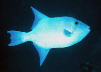 Blue-Spotted Triggerfish. Eastern Atlantic. To two feet long. Feeds