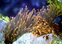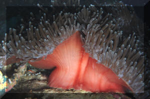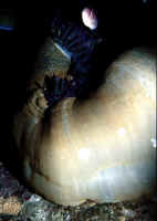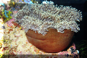 Systems: First of all, space... lots of room... big volumes... You may be saying to yourself... "Gee, the specimen I'm interested in only looks like it's about the size of my hand"... I assure you this animal is much, MUCH larger... I have never seen such small individuals out diving... The collected ones are squeezed (yes) to make them smaller for shipping... The can/do expand with health, growth, happiness... You need hundreds of gallons to keep this animal long term. Also, new tanks need not apply. Your tank needs to be well established to keep this anemone, six months minimum, a year preferable. Where do they live? In the wild in exposed areas, attached to rock... where there is sufficient current or surge, in five to twenty meters of depth. You may have to situate yours on top of a large bommie-like arrangement of rock to elevate it close enough to what lighting you can provide... Likely no more than a foot underwater... Place the animal about halfway on this structure and let it decide... It will.