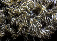 Uncommon, hidden in cracks from which long pseudotentacles extend