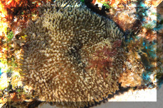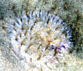 oral disc. Uncommon, found in coral rubble and sand areas. Symbionts include the Spotted Cleaner and Squat