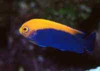 dozens of smaller, less aggressive Wrasses as previously mentioned, the burrowing Jawfishes (family Opistognathidae)(e.g. the Yellow-Headed Opistognathus aurifrons); the pricey Roundheads called Sea Comets or Marine Bettas (e.g. Calloplesiops altivelis); some of the smaller Angelfishes (the Flameback Angel, Centropyge aurontonotus);