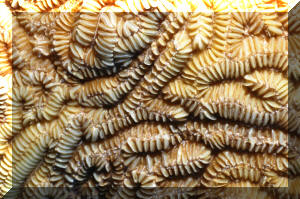Butter Print, Tan Brain Coral. Occurs as flattened and