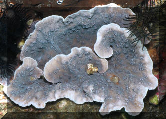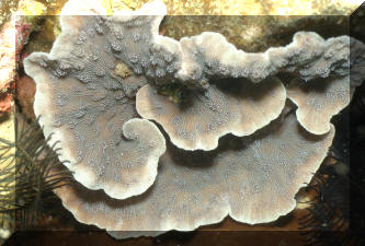 appearance (raised corallites, spiny septa). Mostly wavy laminar sheets