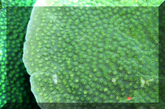 | Caulastrea furcata Dana 1846. Small corallites (under 10 mm. in diameter). Septa are irregular, some much larger (tooth-like) than others, sticking out. Have distinctive "candy cane" appearance. Common in the wild and captivity. Easily kept, cultured, reproduced by fragmentation. Aquarium pix. |