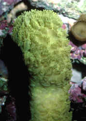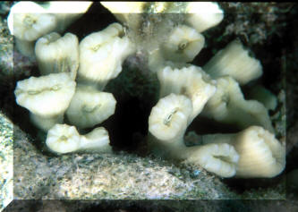| Caulastrea echinulata Wijsman-Best 1972. Though septa are exsert, they're all about the same size. Small polyps, fleshy. Aquarium photo. |
