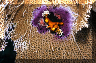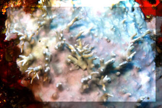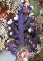 What do you think of when you hear of "dangers from the deep blue seas", giant squids, sharks, other divers? The actual cause of many, or most discomfort from dealing with marine life is from a group of stinging-celled organisms called hydrozoans; in particular the hydroids and fire-coral. The latter may serve another purpose other than stinging like begeesus when they come in contact with your skin; as aquarium specimens. "These stony-coral look-a-likes incorporate single celled algae to manufacture at-times massive colonies of reef-building limestone. They are relatively undemanding, fast-growing marine animals that require nominal "reef" set-up conditions of decent water quality and current. Classification: The fire corals are members of the stinging-celled phylum, the Cnidaria (or Coelenterata); though they superficially look like "true corals" these tissue-grade animals are just as closely allied with jellyfishes and anemones. A quick review of the group: Taxonomists divide cnidarians into three Classes on the basis of predominant body-shape; sessile polyp-like and inverted medusa bell-like forms. Class Scyphozoa, the jellyfishes have a large medusa and small polyp life stages. The Class Anthozoa are polyp stage only; these are the familiar anemones, soft and hard corals, sea fans, and more. And the Class Hydrozoa, with small medusa stages and small-to-large polypoid stages. In turn hydrozoans are sub-divided into five Orders: including the hydroids and hydromedusae (e.g. Hydra); the Order Siphonophora of planktonic, colonial animals, a bad example is the floating "Portuguese man-o-war", Physalia... and our Order du jour, the Hydrocorallina; colonial polypoid Hydrozoans that secrete massive calcium carbonate skeletons. Suborder Stylasterina: /WA Corals: small branching, fan-like colonies • occur in sheltered high- current habitats • often bright colours • azooxanthellate • member of the Hydrozoa • common name lace corals