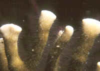 Behavior: Territoriality: Place new specimens, sans shipping water a good three inches from other tank-mates and maintain an ongoing vigil such that they don't come near other living corals, anemones, or sea fans. Don't adjust the specimen's orientation if you can avoid same, as it has adjusted for flow and light conditions. Health: Due to their stinging propensity, fire corals are generally left alone by would-be nibblers; what does "get" them (other than outright hobbyist mistakes) is overgrowth by algae. This is generally "cured" by a careful consideration and elimination of causes: too little, or misplaced circulation, inadequate filtration. On Getting Stung: Prevention is, of course, preferable... on the reef, keep covered and don't touch ANYTHING. In aquariums, use a dedicated, full-length glove or two if/when you feel it's necessary to "take the plunge". Still zapped? Meat tenderizer, and/or very warm water quickly applied are my favorite treatments. Feeding/Foods/Nutrition: Types, Frequency, Amount, Wastes Fire corals are obligate symbionts with their Zooxanthellae. They utilize endo-symbiotic Dinoflagellates for food production and waste elimination. Additionally, Milleporans filter feed to some extent, utilizing their short furry tentacles stinging cells (nematocysts). A mix of live brine or frozen/defrosted animal-based food may be offered by placement on the polyps or sprayed in their general direction. Leave the water pumps off for a while and guard against excess. Reproduction: Minute free-swimming medusae are produced in sexual generations; asexual "breaking" and splitting also generate "new" individuals. Close: Fire corals may not be the most striking in terms of color or structure, but they are amongst the hardiest group of cnidarians and very coral-like, utilizing Zooxanthellae, and being true reef-builders. These false-corals can be easily maintained in "standard" or reef-type marine aquaria, with simple provision of adequate light and strong current; Very hardy, undemanding, good choices for intermediate to advanced marine hobbyists. Bibliography/Further Reading: Allen, Gerald R. & Roger Steene, 1994. Indo-Pacific Coral Reef Field Guide. Tropical Reef Research, Singapore. Barnes, Robert D. 1987. Invertebrate Zoology, 5th ed. Saunders College Publishing, FLA. Colin, Patrick L. 1988. Marine invertebrates and plants of the living reef. T.F.H. Publ., Neptune City, NJ. Fenner, Bob. 1992. Cnidaria: Stinging celled animals. FAMA 7/92. Gosliner, Terrence M., David W. Behrens & Gary C. Williams, 1996. Coral Reef Animals of the Indo-Pacific. Sea Challengers, CA. Gutierrez, Santiago. 1991. From a reef's point of view... Hydrozoa, Milleporina, Millepora. FAMA 2/93. Haywood, Martyn. 1989. The Manual of Marine Invertebrates. Tetra Press, Morris Plains, NJ. Straughan, Robert P.L. 1975. Keeping live corals and invertebrates. A.S. Barnes, S. Brunswick. Veron, J.E.N., 1986. Corals of Australia and the Indo-Pacific. Angus & Robertson Publishers, Australia. |
