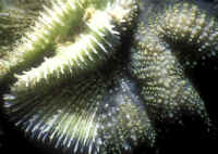 yellowish teeth (handful) per corallite. Gray, green in color.