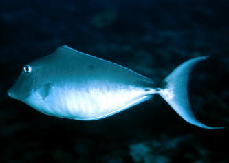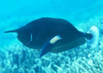 Gray Unicornfish. To about two feet in length. Pacific Ocean;