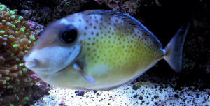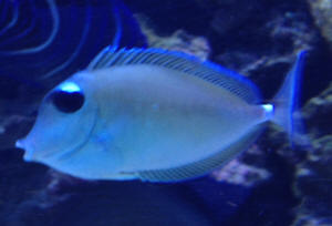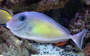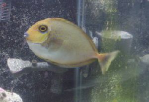 Naso tang ID 5/12/07 Hi Bob/Crew, <Joe> Thanks for taking the time to read my question. I would like to get your opinion on identifying a surgeonfish at my LFS. It was white/very light grey in colour, with blue spots around its face and head. There were no other colours on the body, however, I did see it randomly change colour and take on a brown body colour with white spots. It was only approximately 3-4 inches in length, with no noticeable 'horn'. <Can develop with time, age, growth> I have read the WWM content on Naso identification, but can't seem to find an exact matching juvenile picture. I am of the opinion that it may possibly be a Naso tuberosus or Naso vlamingii. What do you think? Regards, Joe. <Need a photo or two here Joe... Have seen juveniles of each in captivity but mostly Vlaming's... A notable Tuberosus (minus frontal protuberance) in Toronto a couple weeks back... Bob Fenner> Blonde and Naso Tang 2/22/07 Hi Bob, I have a quick and easy question for you.. What is the difference between a Blonde Naso Tang and a Naso Tang. <Heeeee! About the same as a blonde and brunette in our species... the color...> Everywhere I look they both look the same. <Are the same species, Naso lituratus> I heard that the Blonde is just more colorful. <Okay> I am thinking of purchasing one for my 125 gallon tank, but just want to know what the difference is between the two. Thank You Aaron <Mmm, color is about it... both need big systems to be happy, healthy... eat the same foods, are about the same hardiness. Blondes... do cost more (careful here Bob...). BobF> Re: Blonde and Naso Tang 2/23/07 Thank You, that's what I was hoping to here, my next quick one is, I have a 125 gallon reef ready with 150#'s of live sand, 100#'s of live rock, one small tomato clown, and one emerald crab. It's been like that for over a month. Water parameters are fine. Would it be to <too> much for me to add a Naso, Diamond Goby, Cleaner shrimp, and couple more crabs? <I'd be chary of adding crabs...> I add NitroMax <Is capitalized... a proper noun> bacteria additive when I add fish or change the water. <Mmm, not necessary, or advised> Do you think I'd be alright adding that or am I looking for trouble. I would do a water change a couple days before adding, and watch and be ready to do another if necessary. Thanks for all your help Aaron <You should be fine here... with this much space, age of system, presently under-crowded state. Bob Fenner> Some type of Naso Care - 01/09/2006 Hello <Hi, Adam J.> Today I got a unicorn tang for my tank I'm not shore what kind it is can you help .It has fluorescent blue dots on its face and its lips are blue it has a gray color and it is a juvenile and will it get a horn and how big of a tank. <Actually sounds like you have a juvenile Naso vlamingii rather than a juvenile Naso unicornis. They look quite similar when young but completely different as adults compare here: Unicorn: http://fins.actwin.com/pics/Naso_unicornis2.jpg Vlamingii: http://www.hallofreun.de/bilder/f2005/naso-vlamingii.jpg Those are adult photos, I would search Google (where I found the above) for more comparison of juveniles, but as stated above I believe you have the Vlamingii. At any rate both animals grow to be VERY large and need mucho swimming room. Yuppers, you got a tank buster on your hands at a potential 24" for either specimen. You will need a tank of at least 3' in width and 7' in length for an adult. See here for general Naso care: http://www.wetwebmedia.com/naso.htm , be sure to also read the linked FAQ's and articles linked in blue at the top of the page.> Thank you for the help love your web site please excuse any miss spelled words. <Hehe, no need to fret, but thank you for the consideration many folks don't even give their queries a read over. Adam J.>